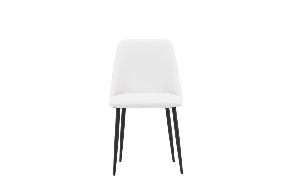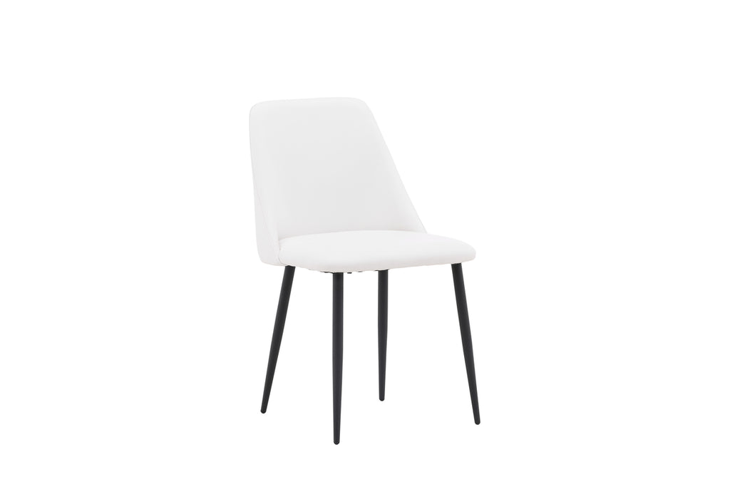 A dining chair that attracts attention and impresses with its Scandinavian design! This chair from the NIGHT series has a fully upholstered seat in white PU upholstery that feels as luxurious as it is elegant and the chair legs are in black steel. The seat is also upholstered for extra comfort. Sit comfortably and enjoy wonderful meals ahead!