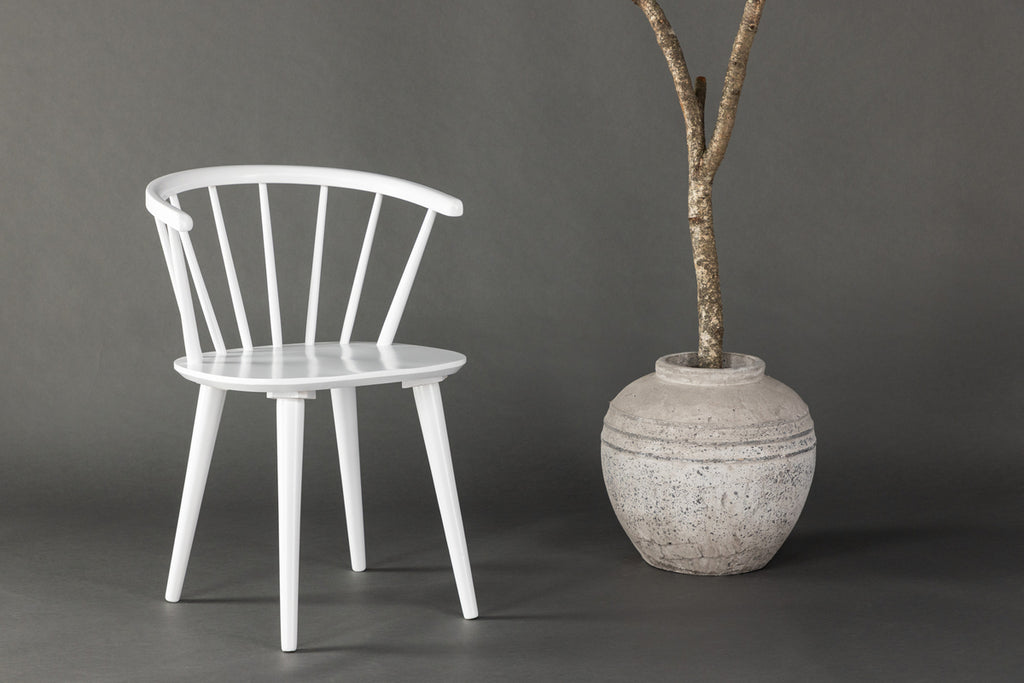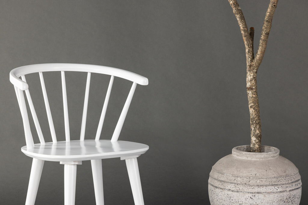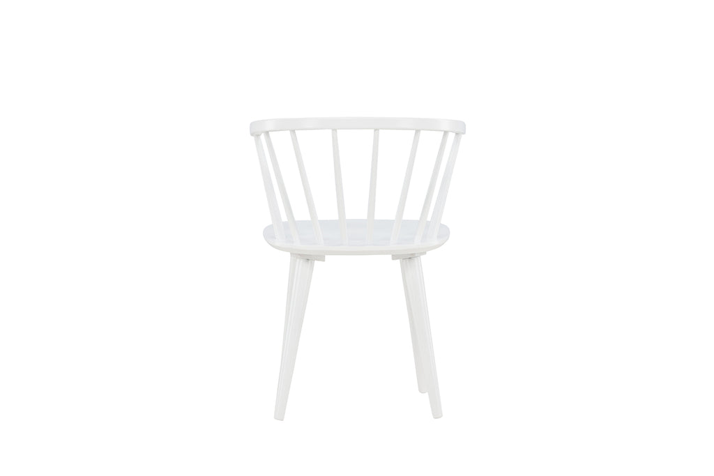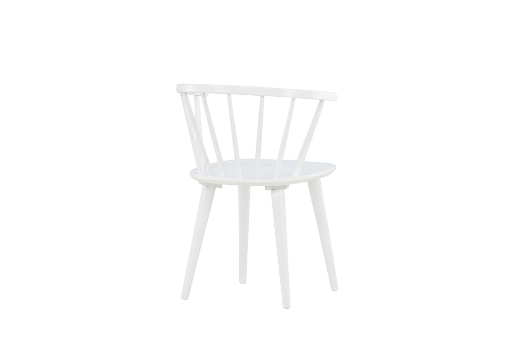 Bobby is a dining chair made of rubber wood and in a white color. This chair creates a warm and inviting atmosphere in the room. With its soft backrest, it offers a comfortable sitting experience.