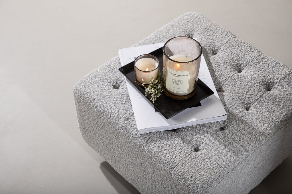 Bowie - en sittpuff som garanterat kommer göra succé i ditt hem! Den här läckra sittpuffen har en rektangulär utformning med mjuka former, tillverkad i ljusgrått boucletyg med djuphäftade knappar som blir till en snygg detalj. Puffen lyfts upp av fyra ben i svart stål som ger ett nätt lyft till möbeln. Använd som fotpall att vila fötterna på, som extra sittplats när gästerna blir många eller placera som en stilikon intill övrigt möblemang - bara fantasin sätter gränserna!