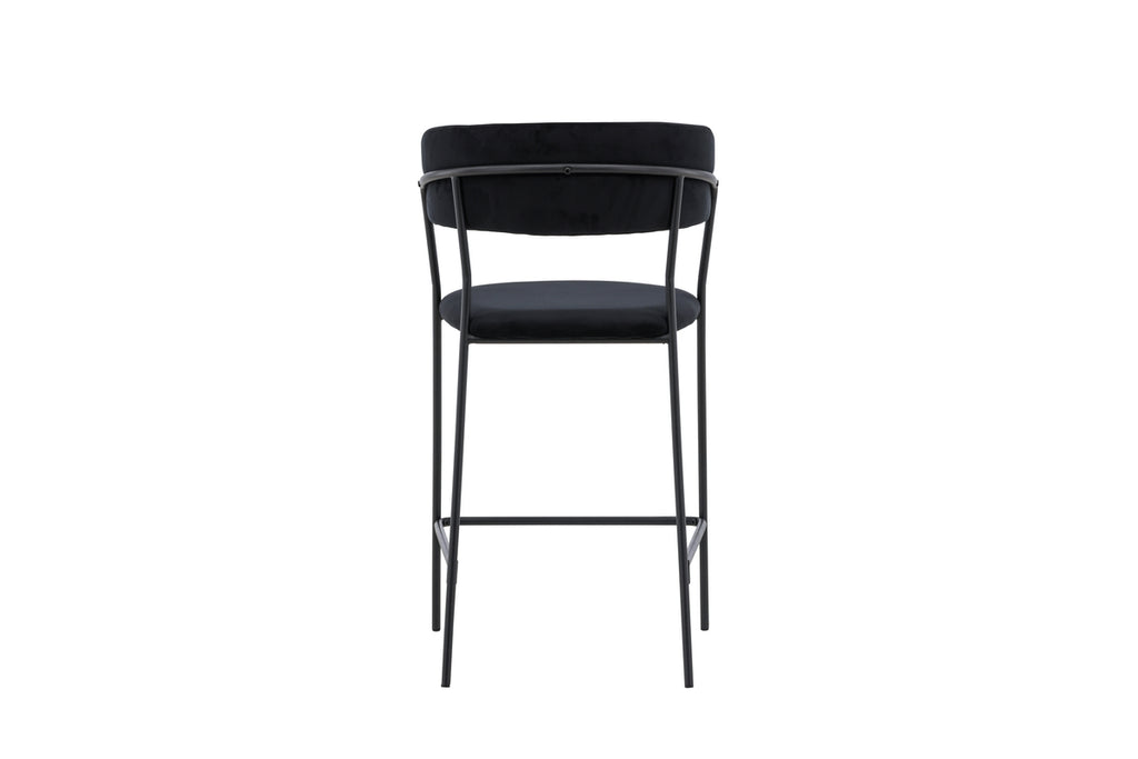 Möblera hemmets hjärta modernt, bekvämt och tidlöst med en iögonfallande barstol från serien Lui i kaxig svart kulör! Den här matstolen har en helklädd design med lätt rundad rygg och sits i velvet med snygga dekorsömmar och stolsbenen är smala i svart stål med integrerat fotstöd – garanterat lika snygg som bekväm. Skapa en inbjudande och trivsam look runt ditt barbord och njut av härliga måltider tillsammans!