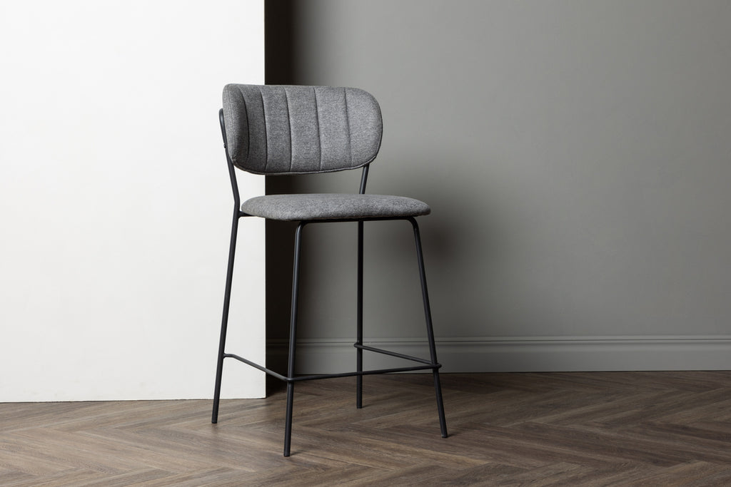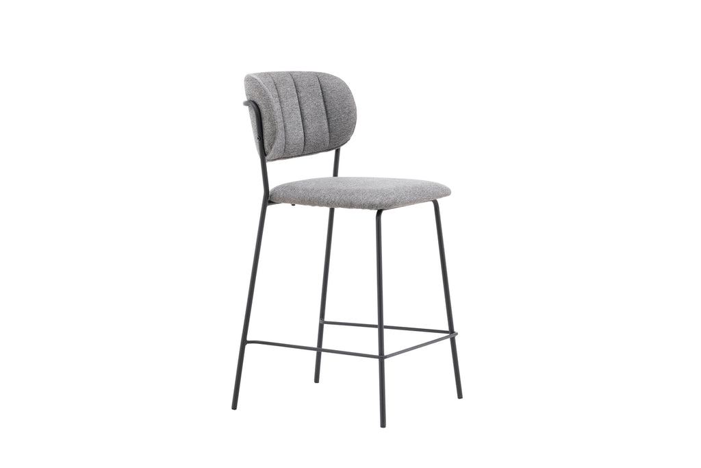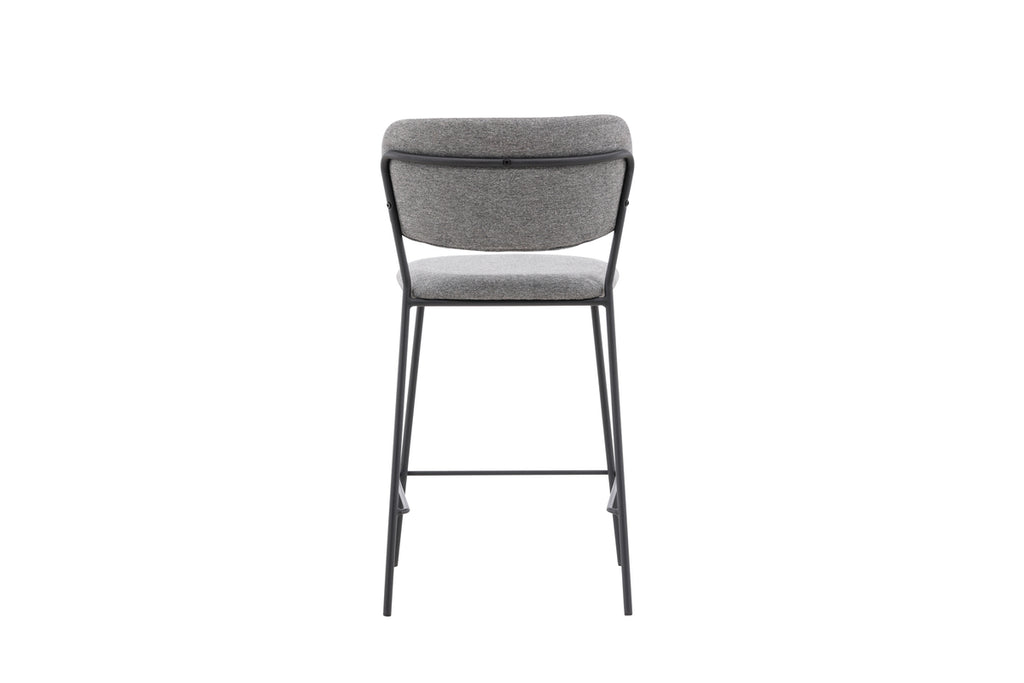 Möblera hemmets hjärta modernt, bekvämt och tidlöst med en iögonfallande barstol från serien Bell i stilren utformning! Den här barstolen har en helklädd design med lätt rundad rygg och sits i grått polyestertyg med snygga dekorsömmar och stolsbenen är smala i svart stål med integrerat fotstöd – garanterat lika snygg som bekväm. Skapa en inbjudande och trivsam look runt ditt barbord och njut av härliga måltider tillsammans!