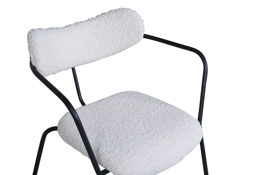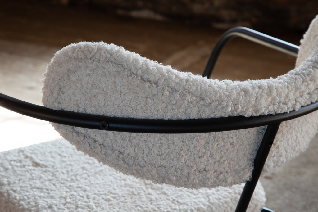 Inred ditt hem med en fåtölj designad helt efter trenderna och skapa ett modemedvetet blickfång! Duffy fåtölj har ett lurvigt och mjukt teddytyg i rygg och sits i benvit kulör som skapar en inbjudande atmosfär i rummet. Den genomtänkta helheten skapar en minimalistisk design med stomme, ben samt integrerade armstöd i svart pulverlackerad metall. Höj inredningen till nästa nivå med en stilikon som passar utmärkt till soffgruppen!
