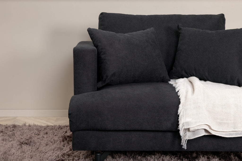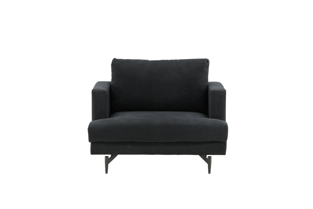 Inred ditt hem stilfullt, bekvämt och inbjudande med en gosig fåtölj från serien Sofia! Designen är minimalistisk med raka nordiska former, mjuka kuddar och stilren klädsel i polyestertyg i en kaxig svart kulör. Benen i svart pulverlackerad metall ger ett snyggt lyft till fåtöljen och bidrar till ett stilrent blickfång. En otroligt genomtänkt helhetsdesign helt enkelt med klädd baksida som möjliggör att placera fåtöljen mitt i rummet. Möblera ensam som stilikon eller i grupp tillsammans med en matchande soffgrupp.