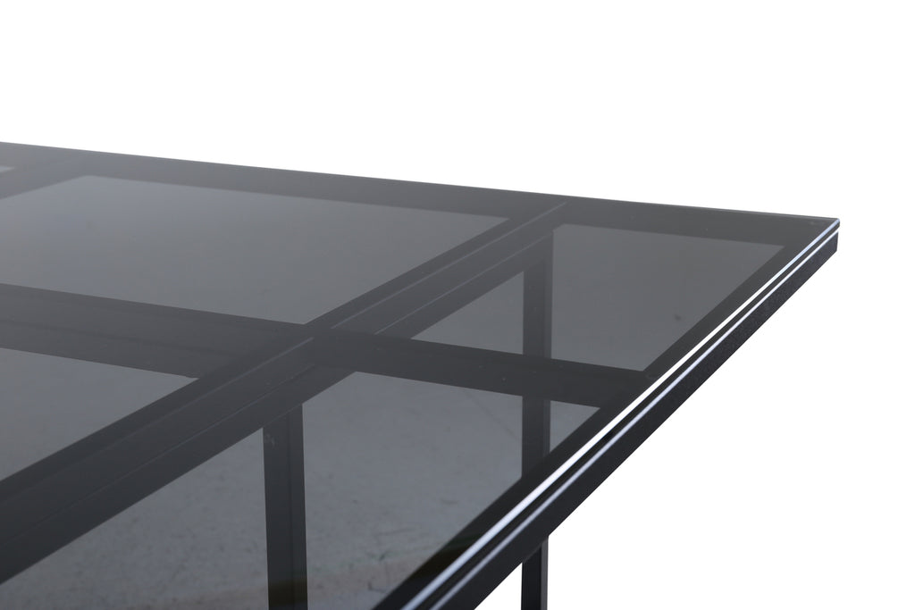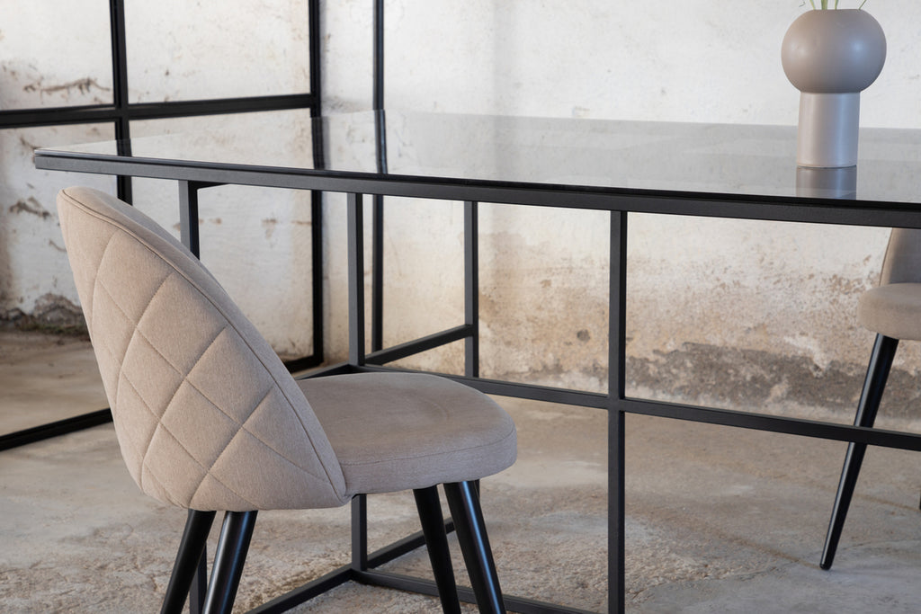 Leif matbord i stilsäker design drar garanterat blickarna till sig och förhöjer inredningskänslan! Den rektangulära toppskivan i rökfärgat glas och svarta ram ger ett lyxigt intryck till rummet och underredet i svart metall har en genomtänkt design med sin moderna industriväggs look. Möblera hemmets hjärta modemedvetet och inbjudande!