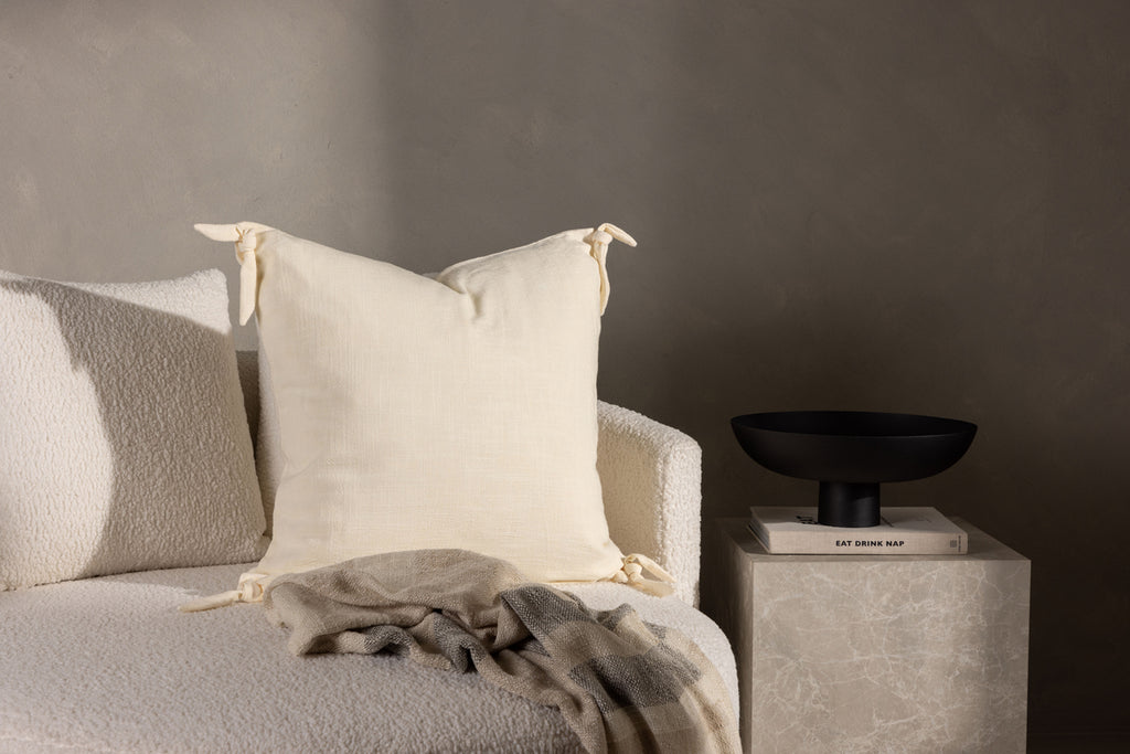 Nora, vårt omtyckta kuddfodral i underbart viskos-linne, designat helt i linje med trenderna! Det här kuddfodralet är både stilrent och följsamt med dekorativa snörningar i vardera hörn som ger ett charmigt intryck. Kuddserien Nora erbjuder kvalitativa kuddfodral i olika storlekar och kulörer - allt för att passa dina önskemål och inredningsstil bäst. Här kommer det i en gräddig vit nyans som enkelt smälter in i det moderna hemmet!