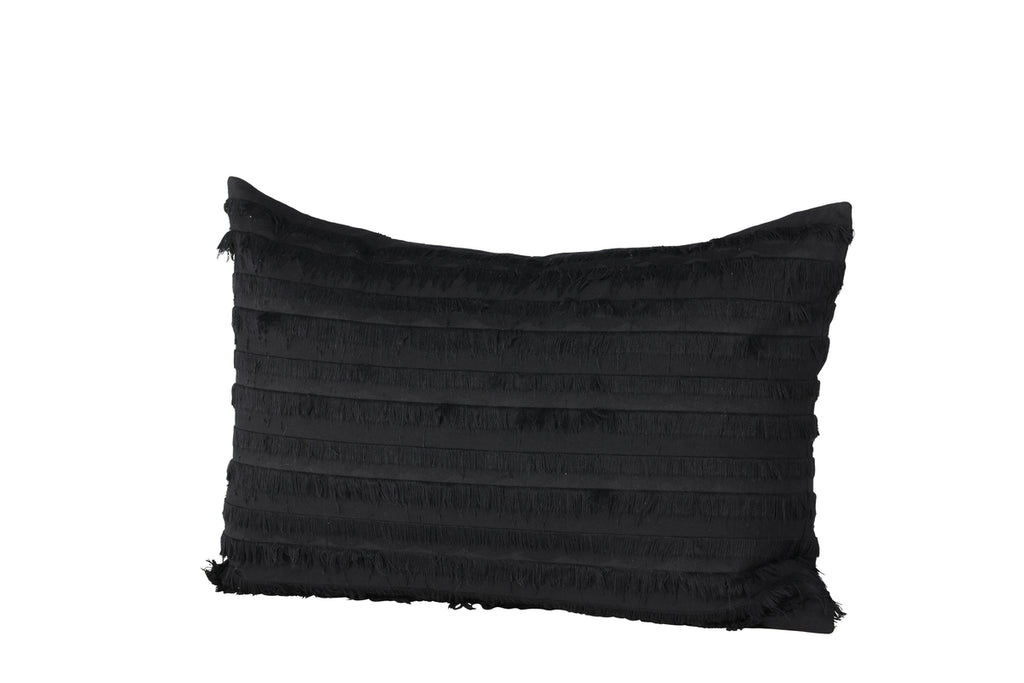 Skapa ett kaxigt blickfång med ett svart kuddfodral som ger din soffa ett schysst lyft! Det här kuddfodralet tillhör serien Edith och är i slitstarkt bomullstyg som står sig över tid. Fodralet har dekorativa fransar som skapar ett snyggt linjärt mönster. Kombinera med andra kulörer och storlekar för att skapa ett varierande och modemedvetet blickfång till din inredning!