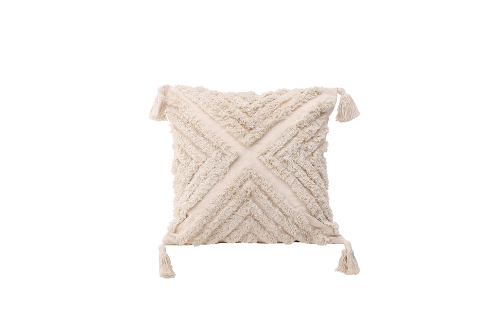 Ett kuddfodral helt i linje med trenderna just nu! Lovis är alla inredningsgurus dröm - gräddig vit i kulören, fluffig i texturen och abstrakt mönster som ger ett vackert blickfång. Det här kuddfodralet har smickarnde tofsar i. vardera hörn och en dold dragkejda nertill. Polyester- och bomullsblandningen är lika slitstarkt som följsamt. Det här är ett kuddfodral som utstrålar mysiga dagar och varma trivselkänslor!