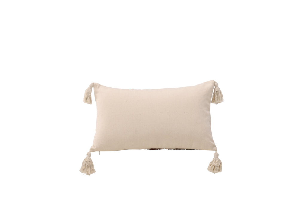 Ett avlångt kuddfodral som drar blickarna till sig! Joline kuddfodral har en stilren färgbas i vitt och ett läckert mönster i tuftat material i kulörerna vit, brun, rosa och röd. Fodralet har också tofsar i vardera hörn som bidrar till ett mer lekfullt uttryck. Polyester och bomullsblandningen är både slitstark och följsam. Det här är verkligen ett kuddfodral som utstrålar konst och modemedvetenhet. Sätt en personlig prägel på inredningen med en färgstark kudde som sticker ut!