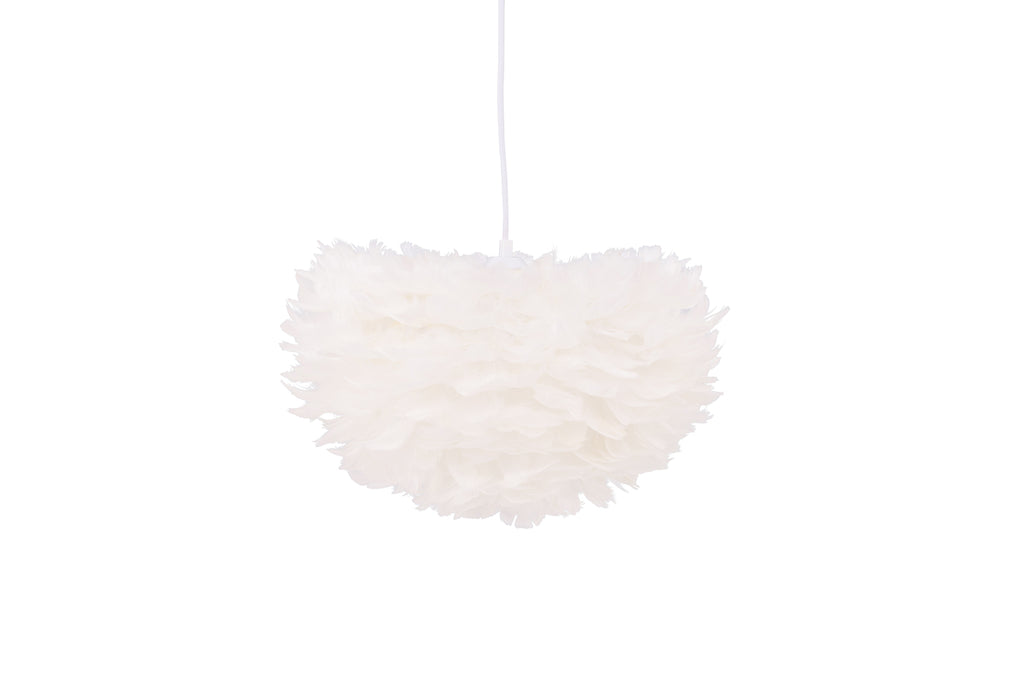 Nicola är en stilfull och elegant taklampa som passar perfekt för att skapa en mjukare känsla i hemmet. Lampan har vita konstgjorda fjädrar som blir en vacker inredningsdetalj och ger ett behagligt ljus som skapar en varm och ombonad känsla i rummet. Placera lampan i sovrummet eller i vardagsrummet så får du garanterat ett härligt blickfång! Nicola finns i fler storlekar. Montering bör utföras av en elektriker.