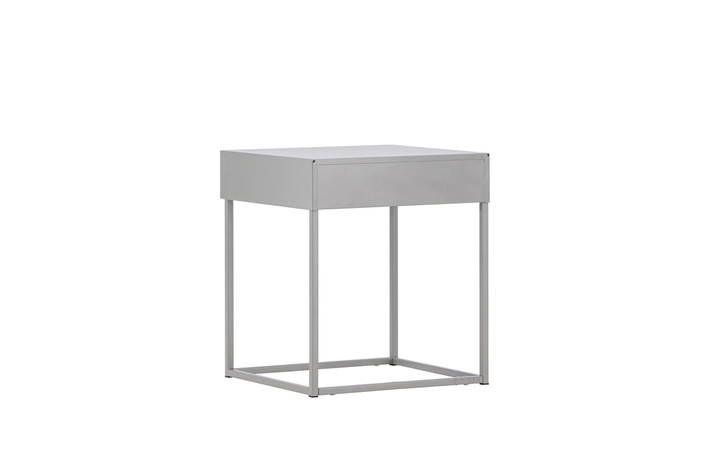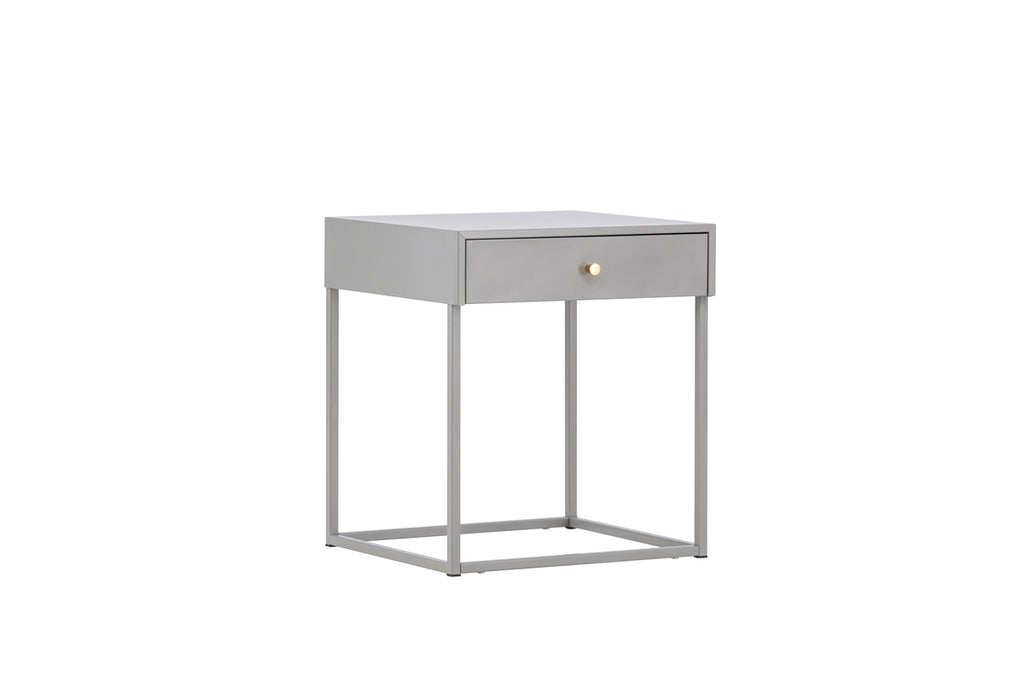 Det här gråa sängbordet i stål är dessutom inte bara en snygg möbel – det är en inbjudan till en bättre och mer organiserad vardag. Glöm oordning och letande efter dina viktigaste ägodelar. Lådan med en vacker mässingfärgad knopp ger en smidig och diskret förvaring för allt du behöver ha nära till hands. Håll din nattläsning, glasögon eller småskatter organiserade och inom räckhåll.