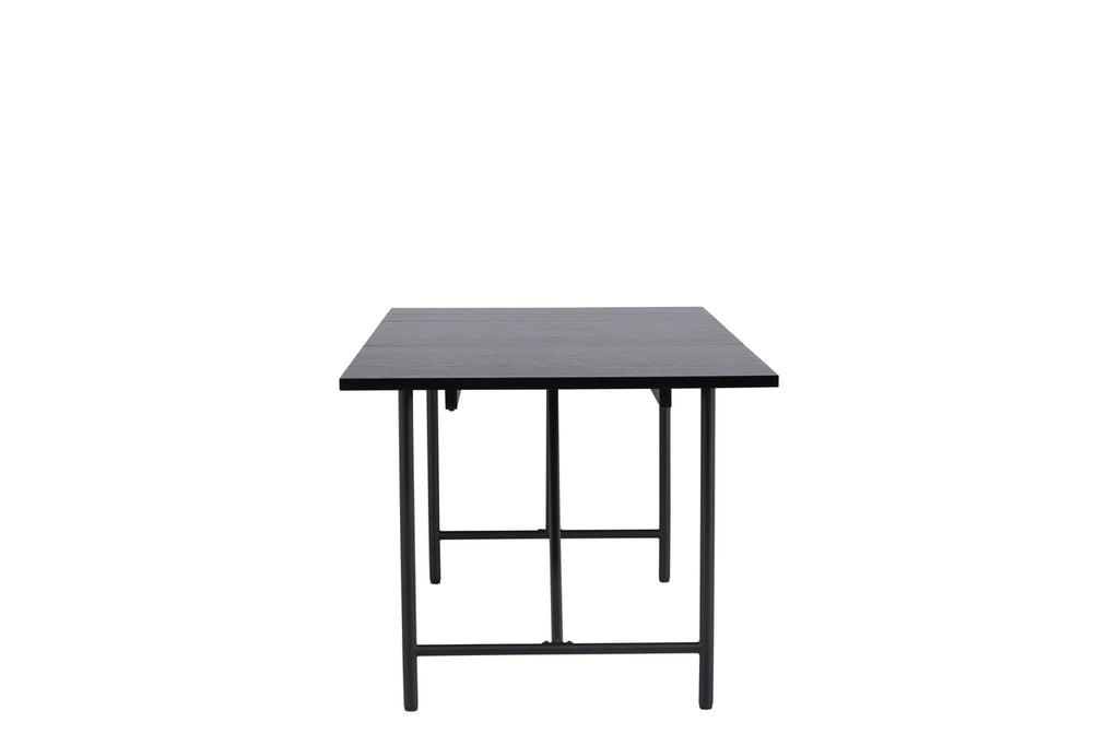 Minimalistisk design går alltid hem! Ge ditt hem ett snyggt lyft med det här vackra matbordet från serien Astrid. Bordsskivan är tunn i en matt svart kulör i MDF med vener. Det smala underredet ger ett luftigt intryck och öppnar upp atmosfären i rummet. Matcha med bekväma stolar och njut av en komplett matgrupp i hemmets hjärta!