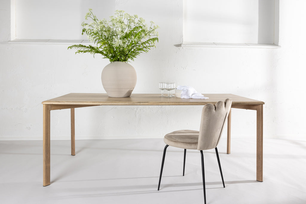 Det kan inte bli fel med en klassisk design och naturskön kulör! Det rektangulära matbordet Damon har en enkel men samtidigt charmig design i raka nordiska former. Toppskivan i MDF är vitputsad och ger ett rustik samtidigt som elegant intryck. Möblera hemmets hjärta inbjudande och trivsamt! Bordets mått: 200x90x75cm.