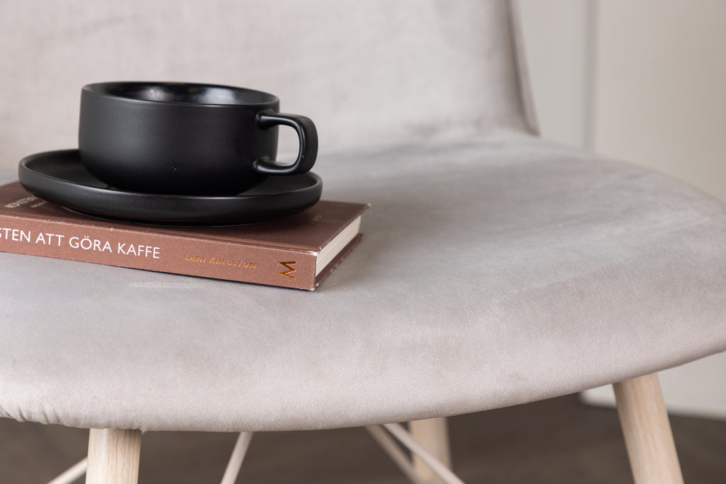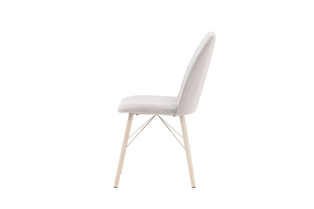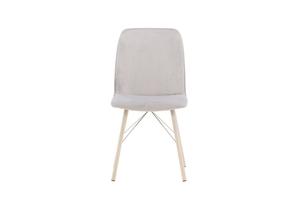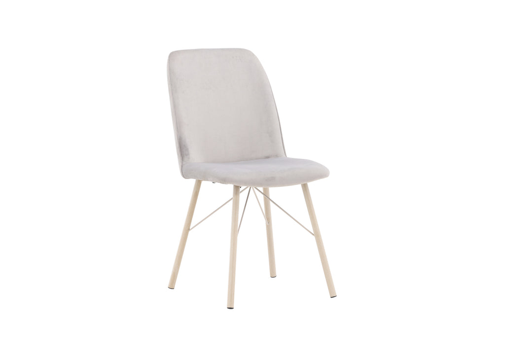 En drömstol i ljusa kulörer som bidrar till en stilren och fräsch atmosfär i ditt hem! EVERYDAY matstol har en helklädd sits i ljusgrått sammetstyg som ger ett lent och skimrande lyster till blickfånget. Stolsbenen är cylinderformade och lätt utsvängda i vittvättat trä. Den perfekta matstolen för det moderna hemmet!