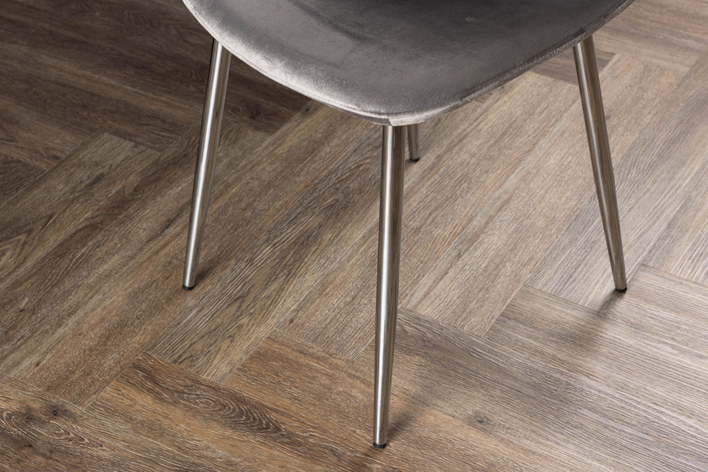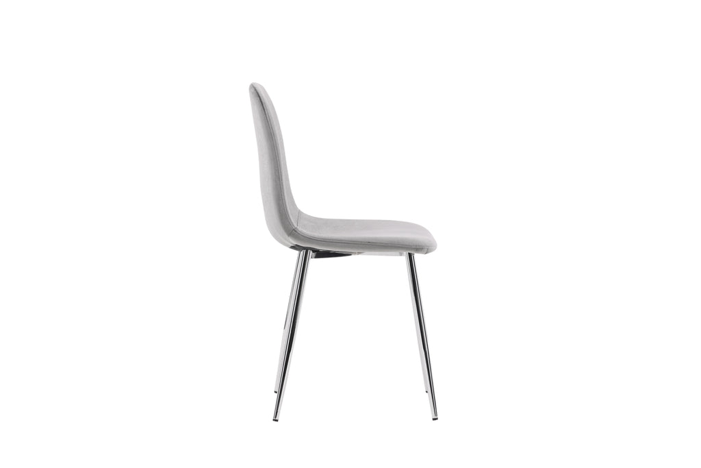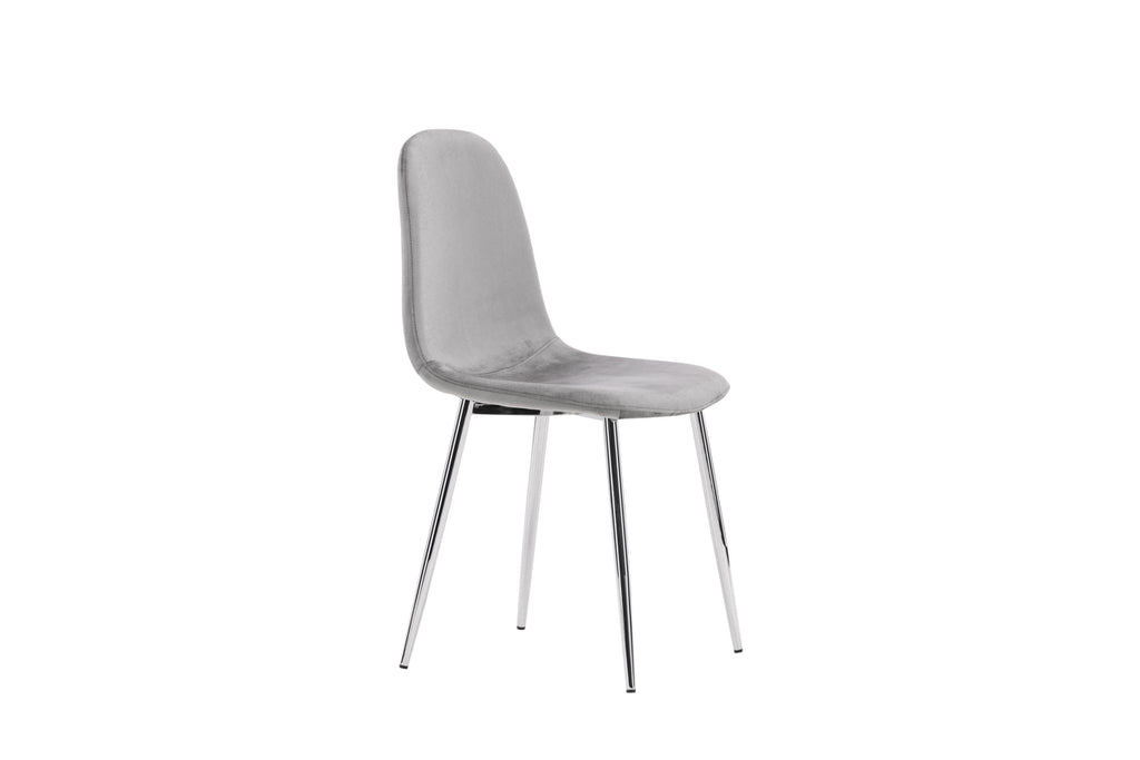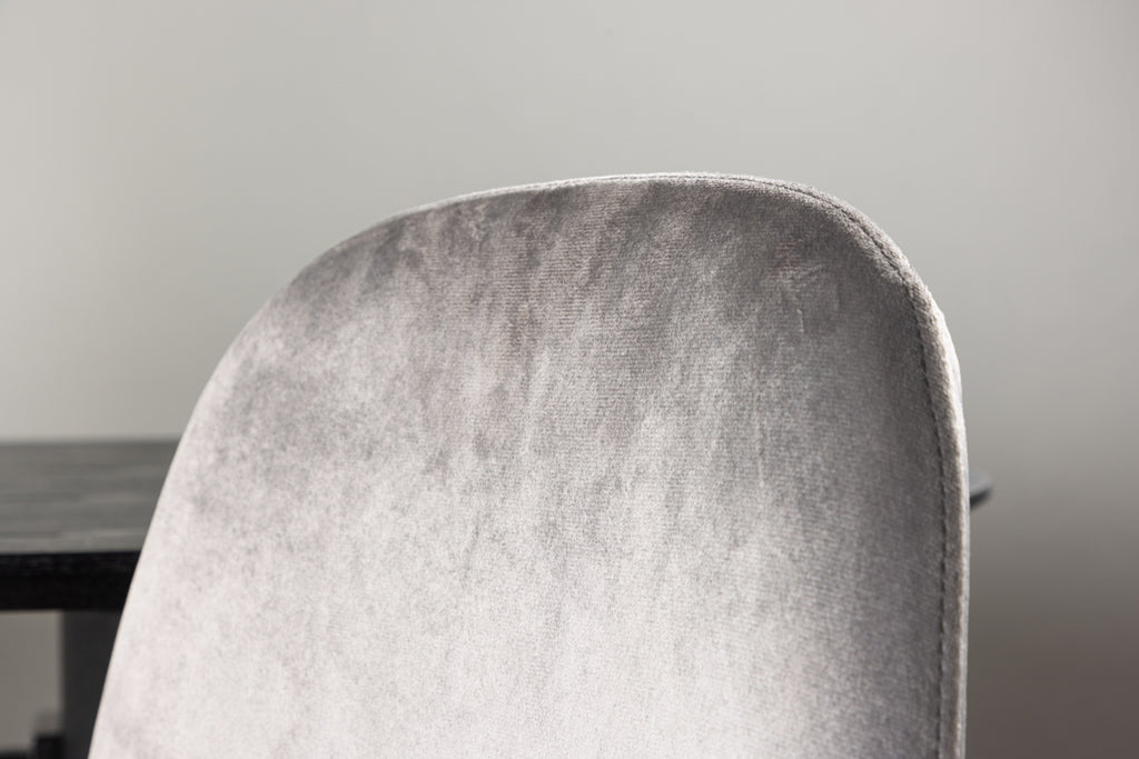En modern drömstol från serien Eva i tidlös ljusgrå kulör! Den här matstolen i en helklädd design med lätt rundad rygg och sits i sammetstyg och ben i ljusgrå metall är lika bekväm som iögonfallande. Möblera hemmets hjärta inbjudande och trivsamt och njut av härliga måltider tillsammans!