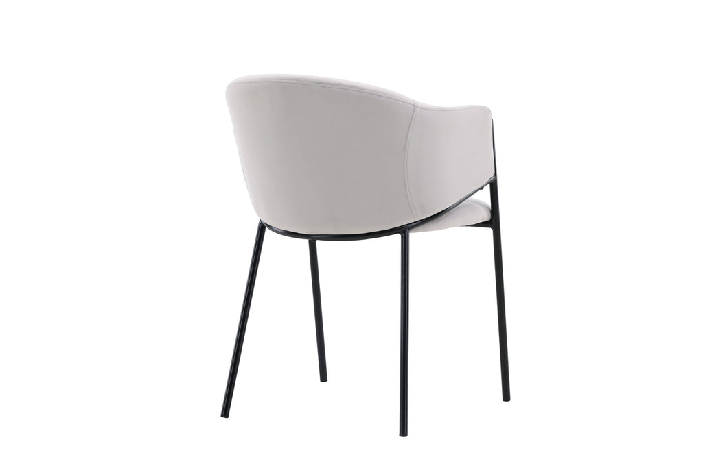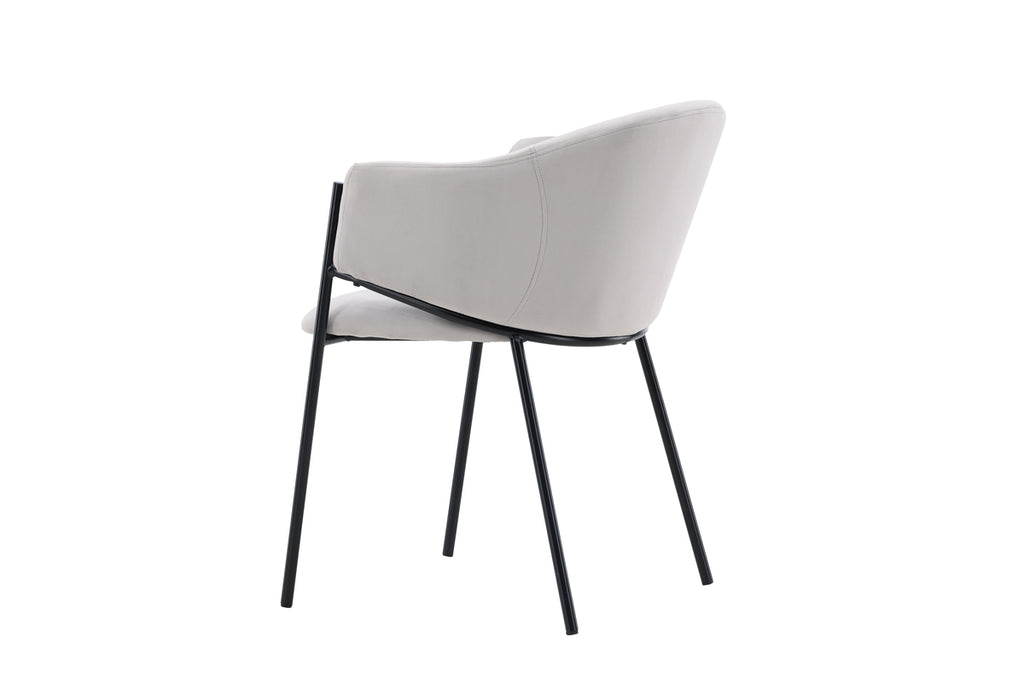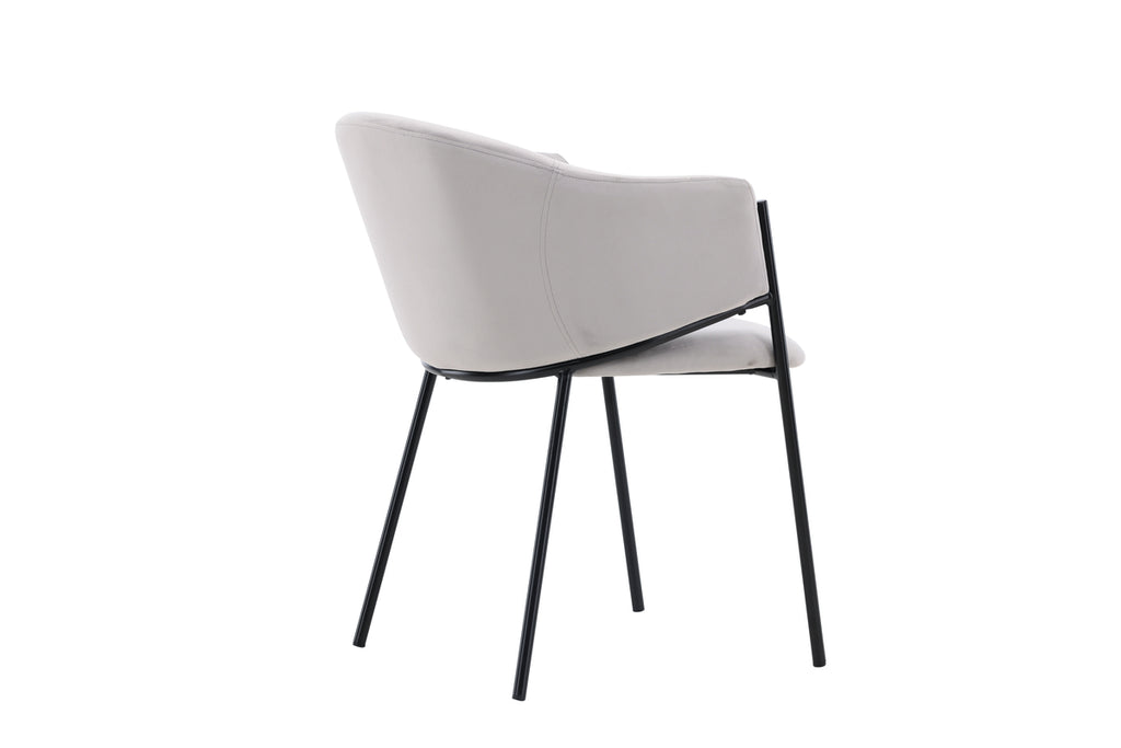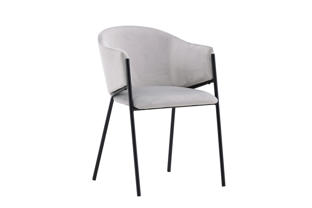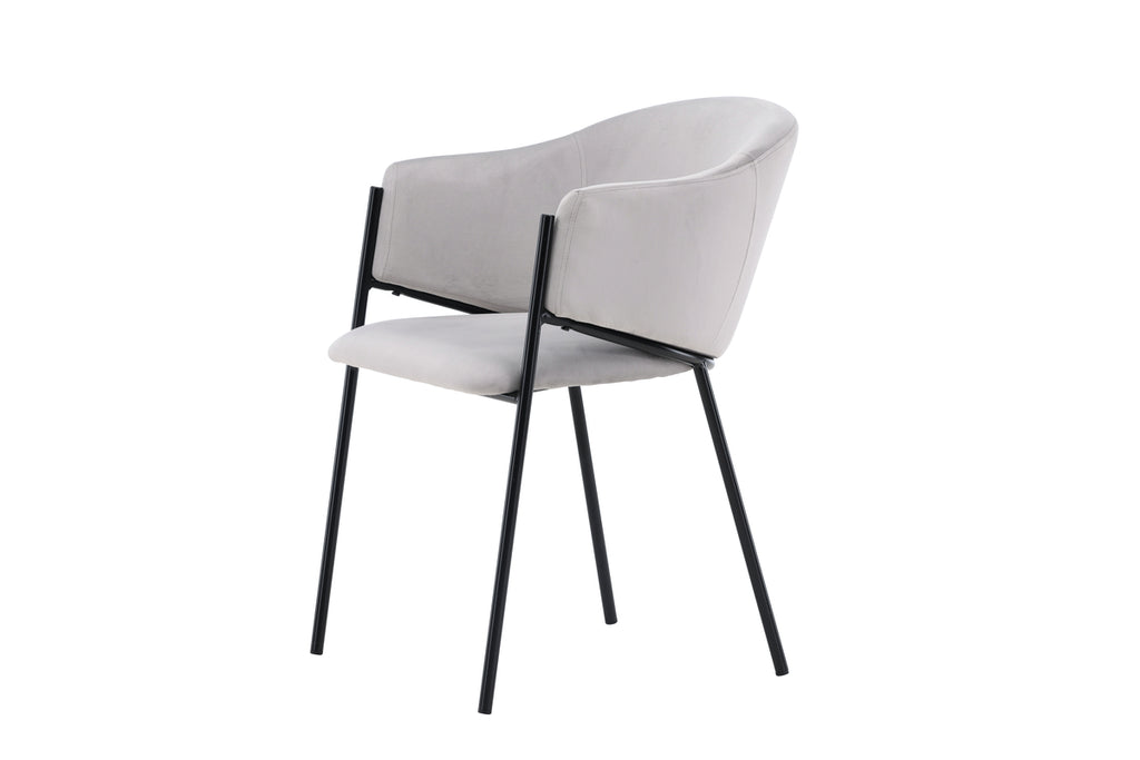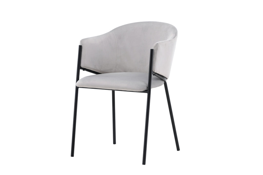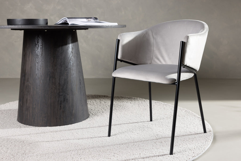 Matstolen från serien Evelina har ett nostalgiskt uttryck, är lika stilren som bekväm och skapar ett lyxigt blickfång kring ditt matbord! Stolen har en helklädd sits med ett rundat ryggstöd i ljusgrått sammetstyg och dekorativ, minimalistisk benstomme i svart stål. Den trendsäkra designen imponerar och är helt i linje med trenderna. Sitt bekvämt och njut av måltiderna i dessa eleganta matstolarna!