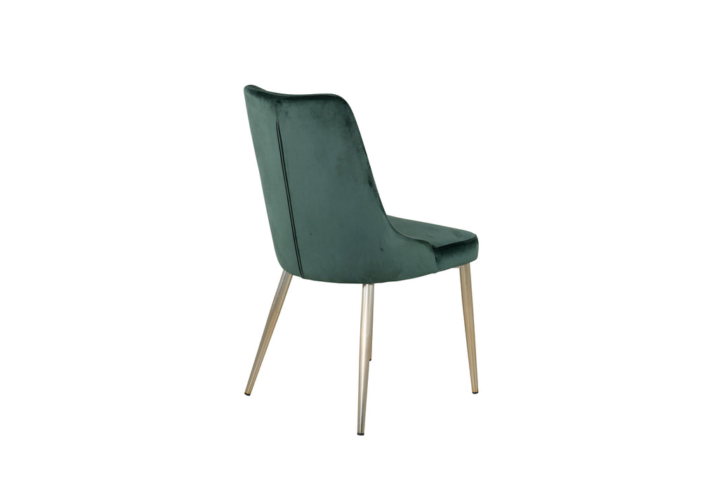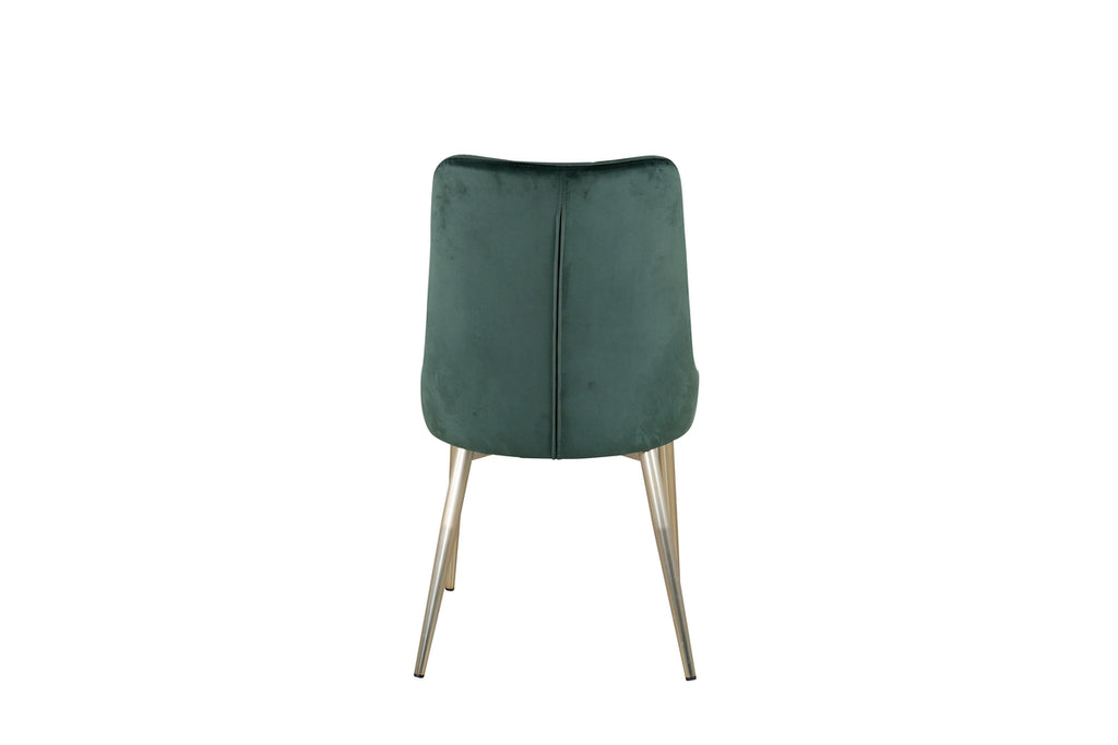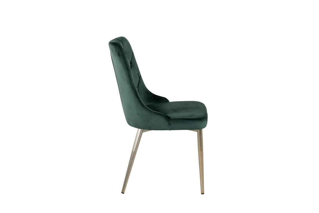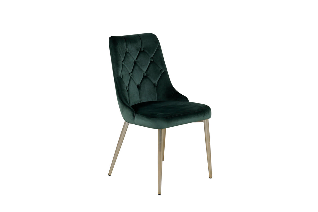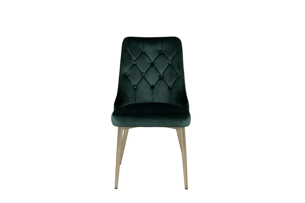 Skapa en pampig atmosfär i ditt hem med ett par sköna skogsgröna matstolar från serien Velvet Lyx. Stolen har en helklädd design, ben i mässingfolierad metall samt rundad rygg och sits i läckert grönt sammetstyg med mjuk stoppning och dekorativa knappar. Lika bekväm som iögonfallande! Lättare montering krävs.