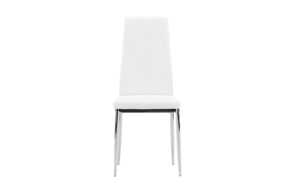 En modern matstol för det pampiga vardagsrummet! Den här matstolar från serien Pastill har en hög rygg och helklädd sits i vitt konstläder som är stoppat för extra komfort. Stolsbenen är raka i silvrig metall. Komplettera med ett pampigt matbord, sitt skönt och njut av trivsamma måltider framöver!