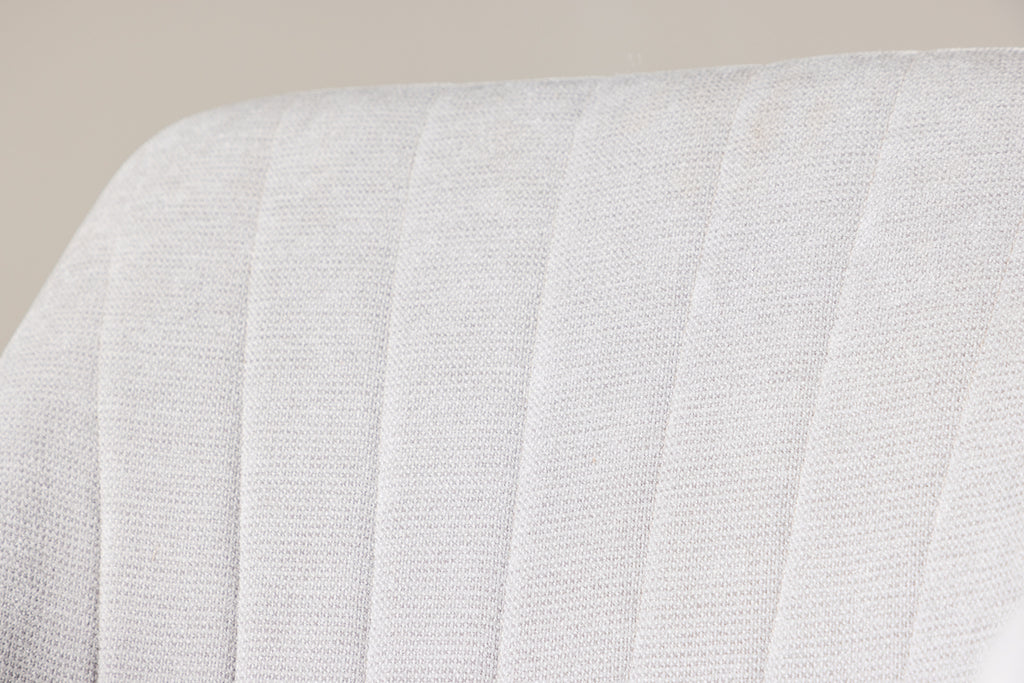 Stolen är tillverkad av polyesterlinne för en bekväm sittupplevelse och har ben i stål för stabilitet och långvarig användning.