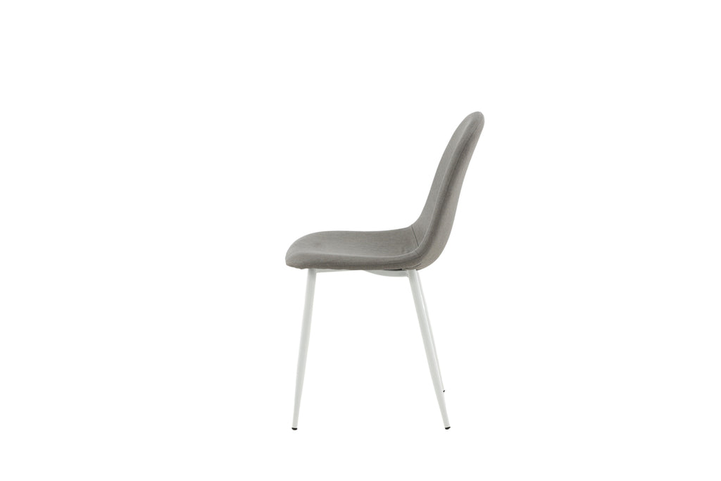 En praktisk matstol i all sin enkelhet - lika bekväm som behändig! Polar har en helklädd design med ben i vit pulverlackerad metall samt med en lätt rundad rygg och sits i stoppad grått polyestertyg. Matcha med ett läckert matbord och njut av trivsamma måltider framöver! Lättare montering krävs.