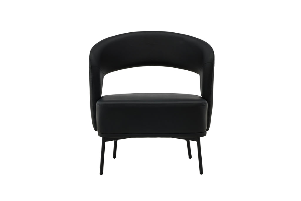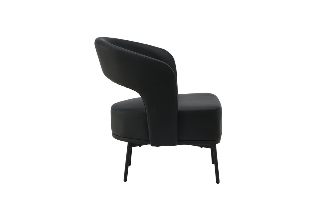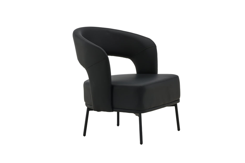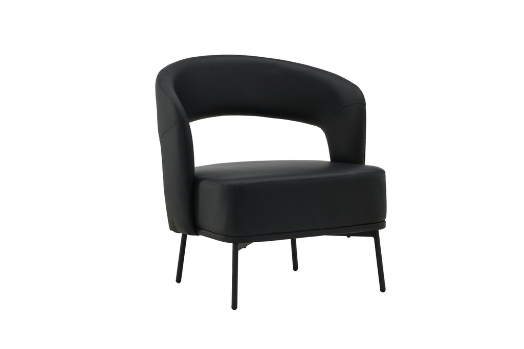 Den svarta fåtöljen Mundo blir snabbt en stilikon i ditt hem och sätter tonen för övrig inredning! Den här fåtöljen har en elegant klädsel i svart TP och smala stolsben i svart metall som ger ett snyggt lyft och underlättar även för dammsugaren. Designen är genomtänkt med ett öppet ryggslut som bidrar till en unik utformning. På så vis lika stilren som praktisk och fungerar utmärkt både som extra sittplats intill din soffgrupp eller ensam som inredningshöjare. Möblera ditt hem personligt och i slitstarka material så får du möbler som står sig över tid och dessutom imponerar på allt och alla!