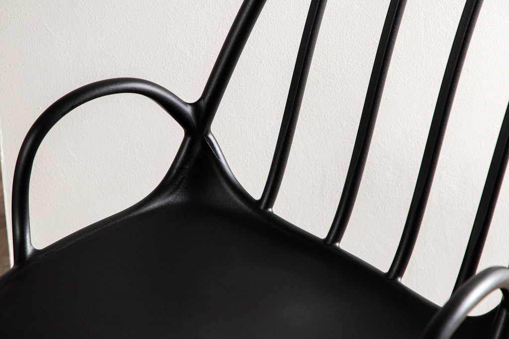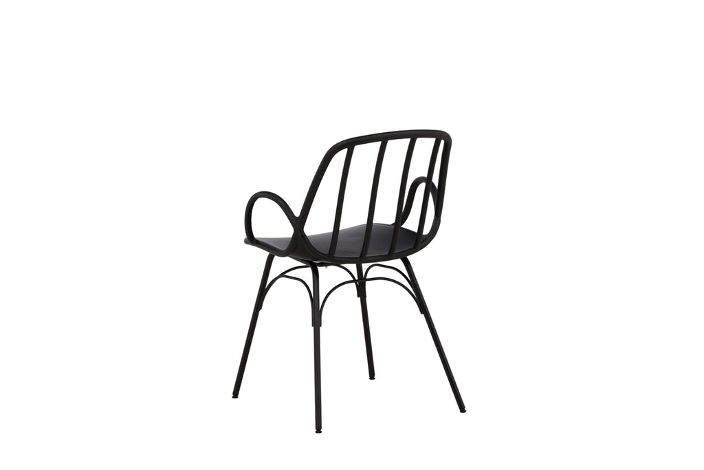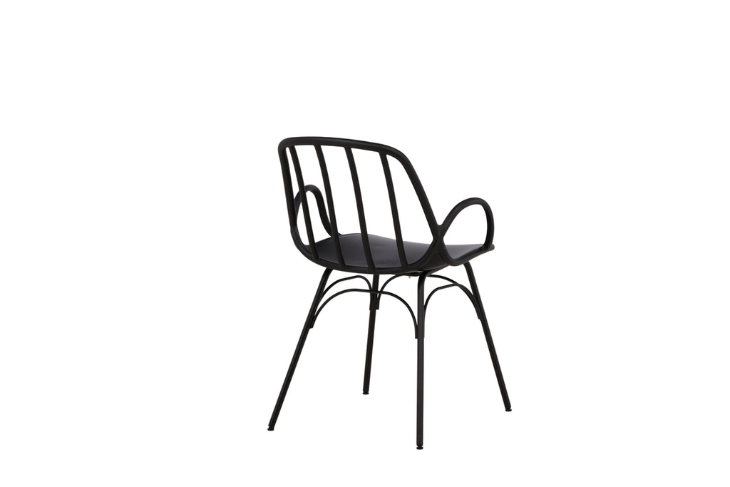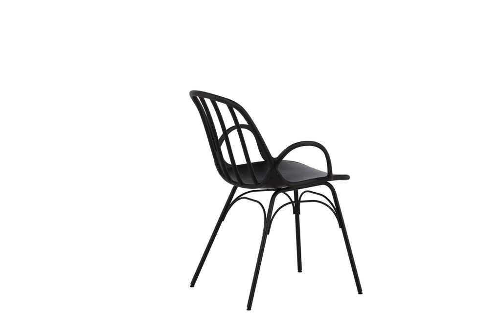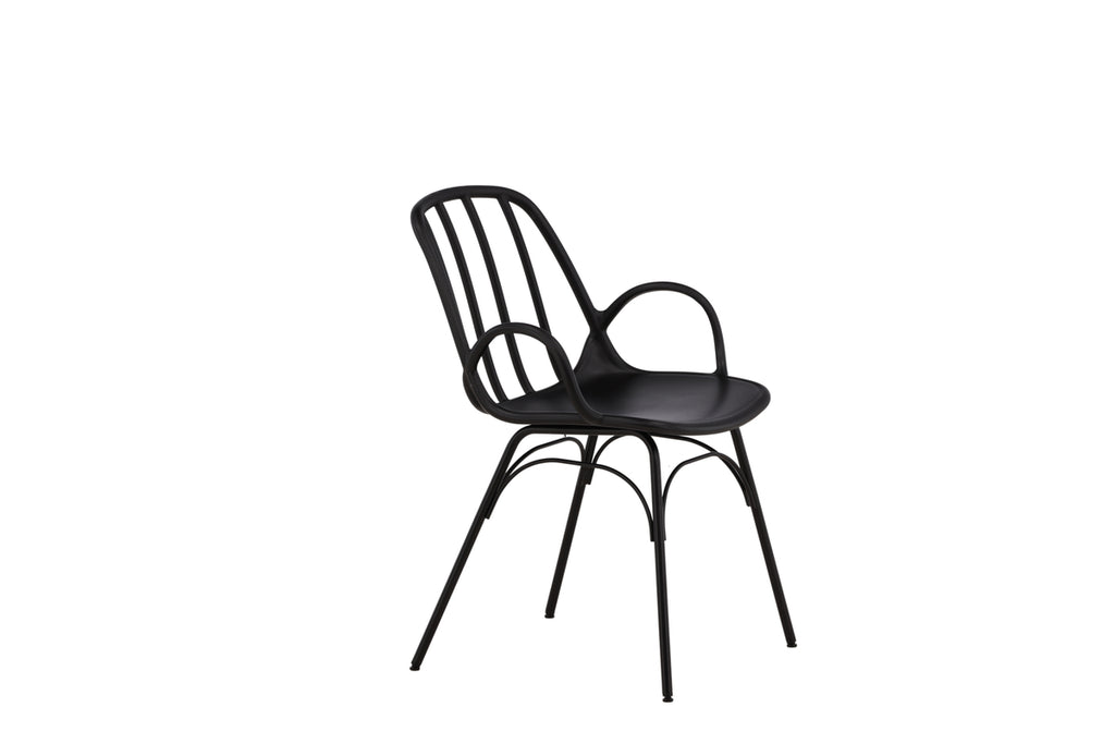 Dyrön - En svart matstol som skapar en personlig och modemedveten atmosfär i ditt hem! Den här läckra matstolen är lika stilren som praktisk, tillverkad i svart plast och stål. Sitsen har integrerade armstöd och en ribbad design i den lätt rundade ryggen. Stolsbenen är stilrent smala och lätt utsvängda i Skandinavisk design. Möblera kring ett matchande matbord så får du en komplett matgrupp att avnjuta dina måltider kring!