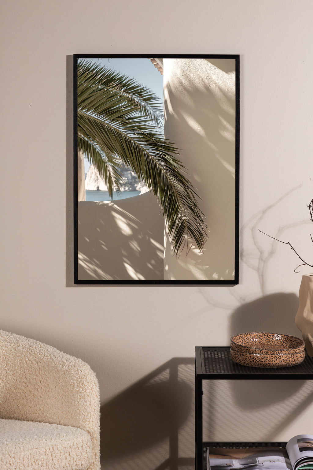 Att drömma sig bort för en stund till varmare breddgrader där palmbladen prasslar i sommarbrisen är det nog många som gör. Ta till vara på den känslan hemm aoch inred med härlig fotokonst med motiv från en varm sommardag i palmernas skugga! Med sina mjuka färger från väggfasaden i kombination med det trendiga gröna från palmbladen skapar du snabbt en modern och stilsäker look hemma. Kombinera med andra prints och skapa en tavelvägg eller låt fotokonsten hänga fritt och ta plats i hemmet! Mått 30x40 cm.