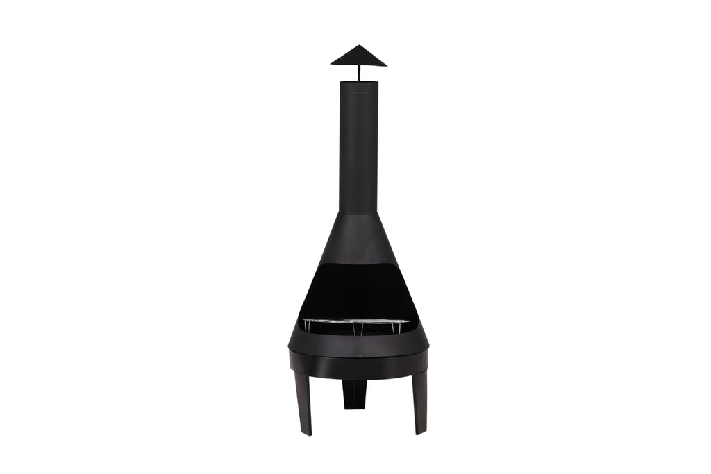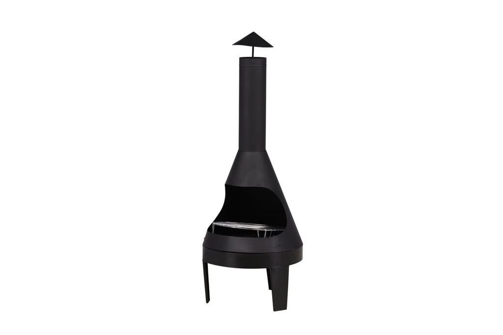 Höj mysfaktorn på uteplatsen med den här värmande eldstaden från serien Marongo. Designen är stilren med cylinderformad kropp som gradvis blir smalare mot toppen. Eldstaden är tillverkad av svart stål med en stor öppning som även har ett galler som passar för grillning. Här kan du göra upp en mysig liten eld att värma dig och gästerna framför under försommaren och sena sommarkvällar. Kom ihåg att inte lämna eldstaden obevakad.
