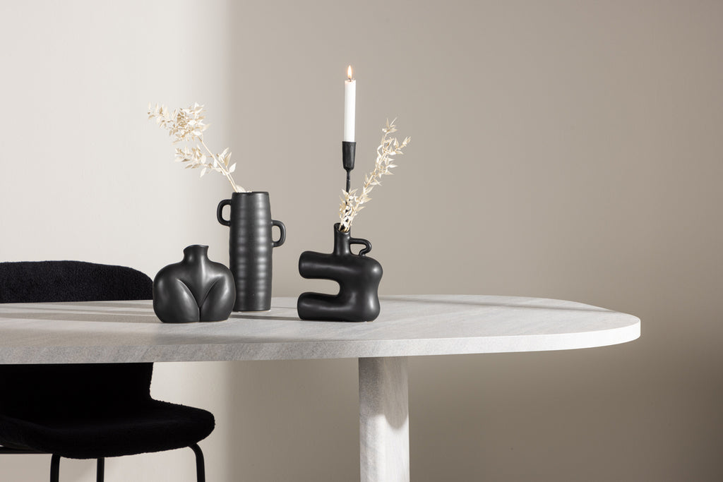 Grönvik-matbordet är elegant utformat med en vacker vit betongfärg, som ger en känsla av rå industriell stil kombinerat med en ren och minimalistisk estetik. Materialet är MDF, vilket ger dig ett tabilt bord under lång tid framöver.