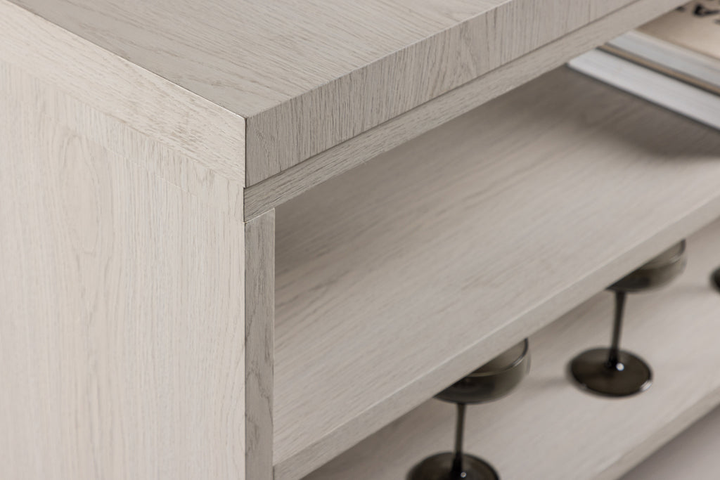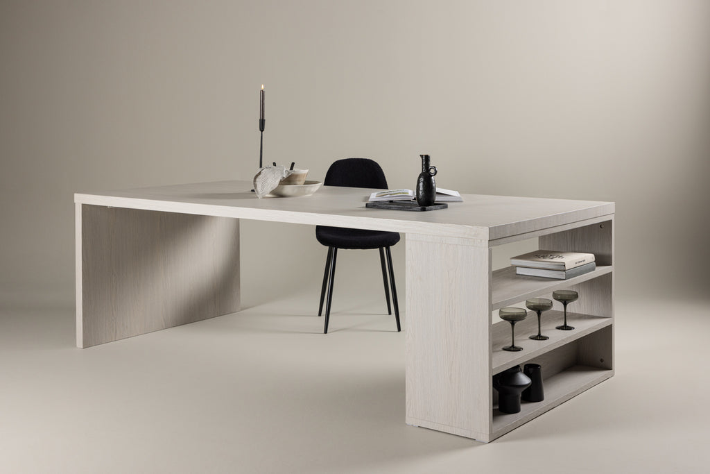 Med generösa mått på 230x110 cm erbjuder Mika matbordet gott om plats för familj och vänner att samlas för härliga måltider och samtal. Dess förvaringshylla på sidan ger extra praktiskt utrymme för att organisera och visa dina favoritprylar.