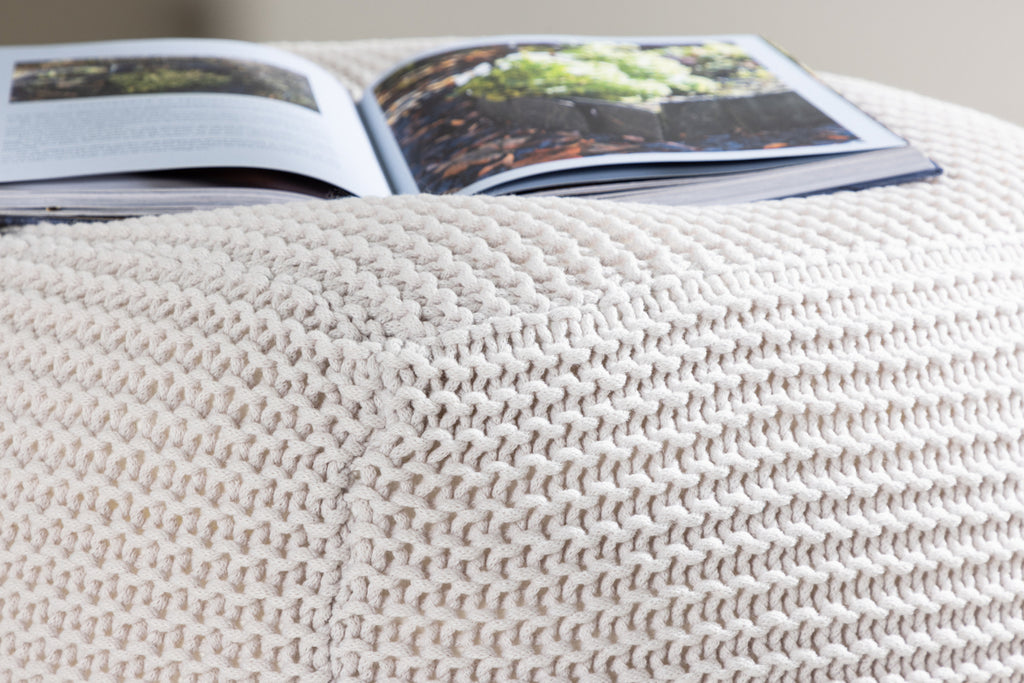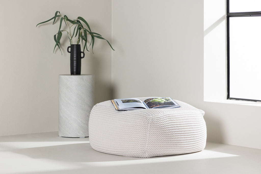 Möta Luca - en puff som kombinerar stil och komfort på ett elegant sätt. Med generösa mått på 60x60 cm erbjuder Luca gott om plats för avkoppling och vila. Den eleganta offwhite färgen och det enkla mönstret ger den ett tidlöst utseende som passar perfekt in i alla heminredningar.