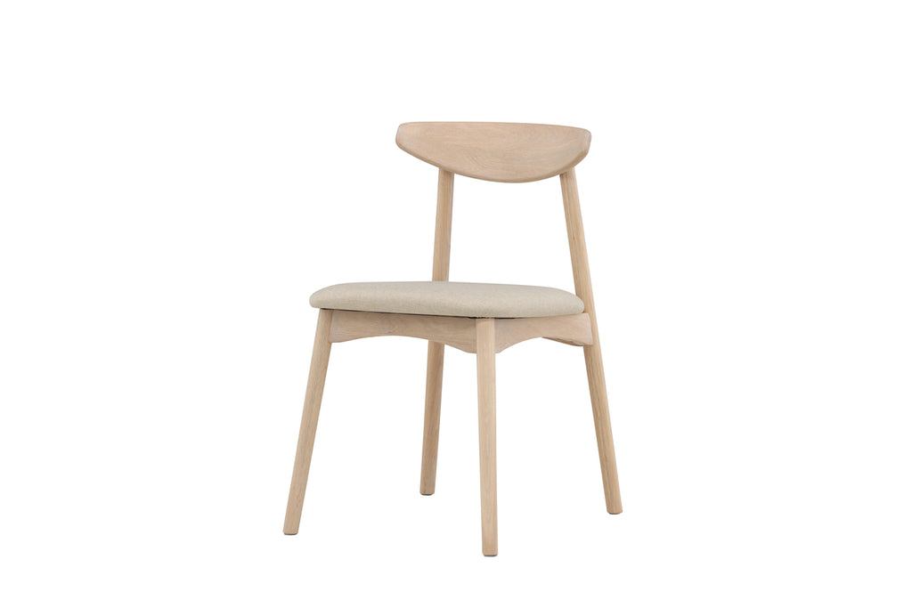 Utforska vår matstol Ven - en stilren möbel i vitvättad ek med en sittdyna i beige, perfekt för att skapa en inbjudande atmosfär vid ditt matsalsbord. Ven-stolen är designad för att kombinera elegans med komfort, vilket gör den till det idealiska valet för att samla familj och vänner under avkopplande middagar eller trevliga stunder.