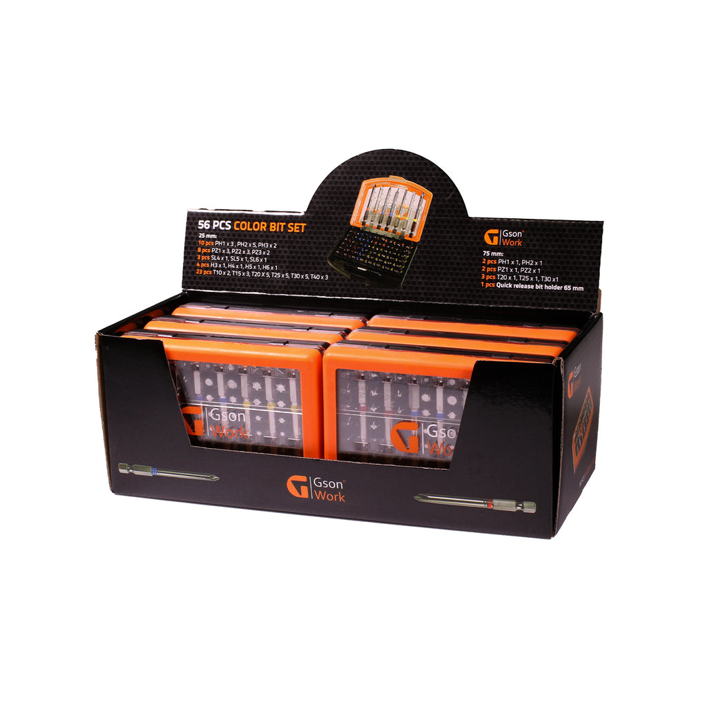 Color Bit Set 25 + 75 mm 56 delar från GSON är ett komplett bitsset tillverkat av slitstarkt S2-stål och utformat för professionell användning.