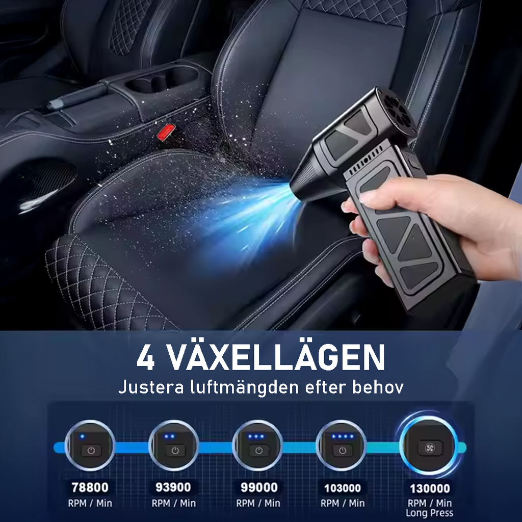 Upptäck vår kraftfulla och bärbara luftblåsare - perfekt för dig som vill hålla bilen, hemmet, kontoret eller trädgården fri från damm, smuts och löv!