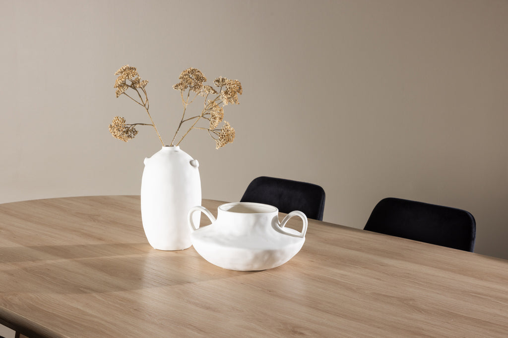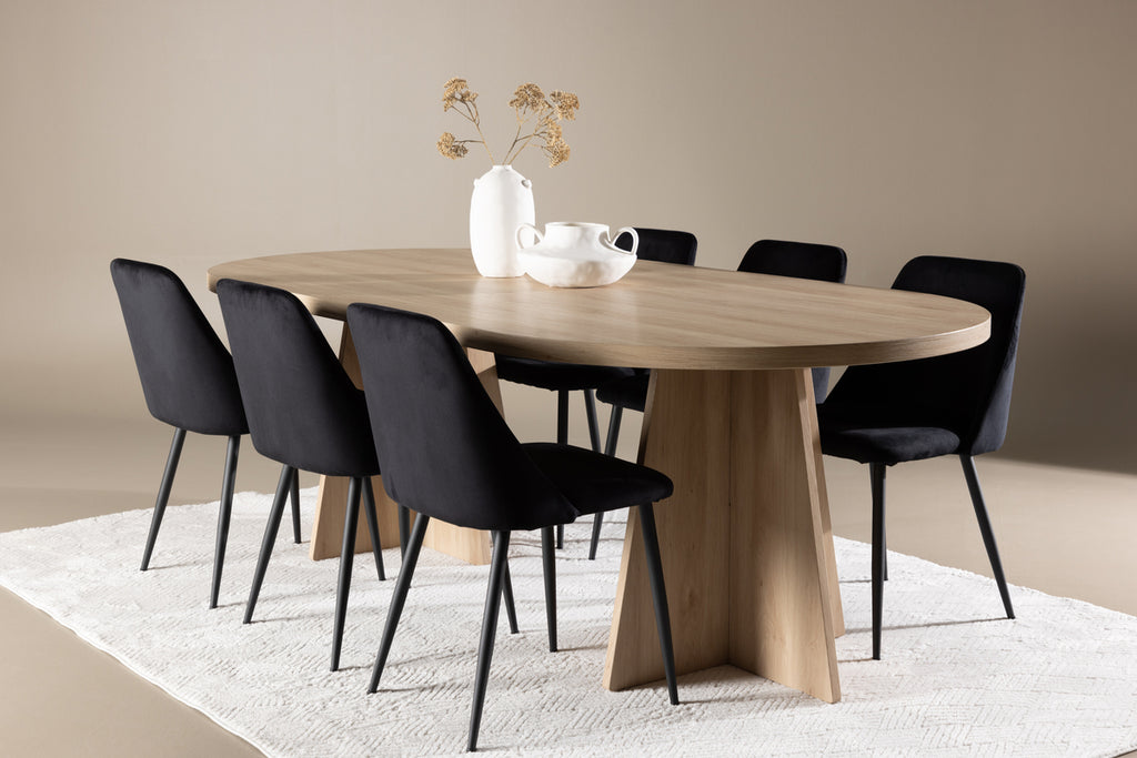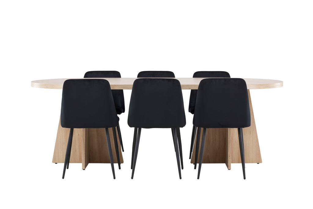 Matstolar 2-pack Svart + Ovala Matbord 115 x 230 Natur