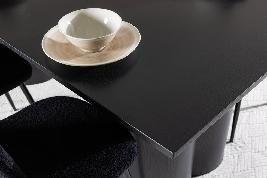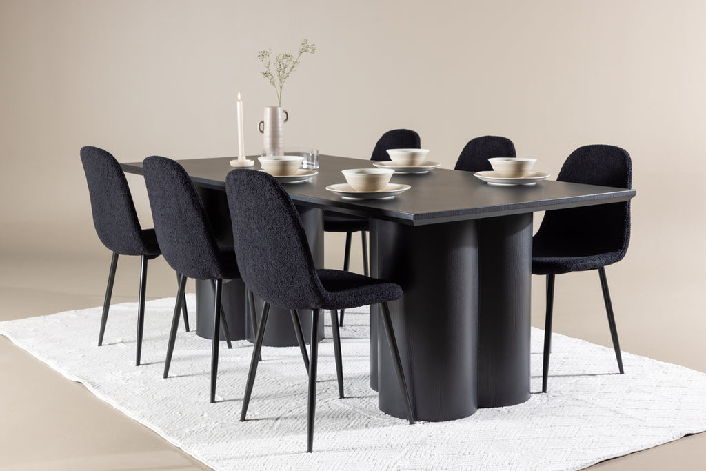 Upplev elegans och funktionalitet med matbordet Olivia. Med sina generösa mått på 210x100 cm är detta bord perfekt för att välkomna vänner och familj till gemensamma måltider och samvaro. Olivia matbordet, i en sofistikerad svart nyans, utstrålar elegans och modernitet. Dess robusta konstruktion garanterar stabilitet under lång tid framöver. Skapa en trendig atmosfär i ditt hem med Olivia matbordet. Dess stilrena design och tidlösa färg gör det till en perfekt passform för olika inredningsstilar. Låt Olivia matbordet skapa dina sociala tillställningar och minnen medan du delar måltider och samtal med dina nära och kära. Ge ditt hem en touch av elegans och gemenskap med detta imponerande och funktionella bord.