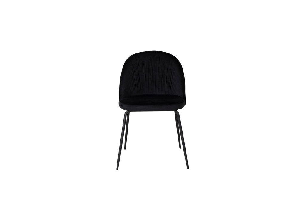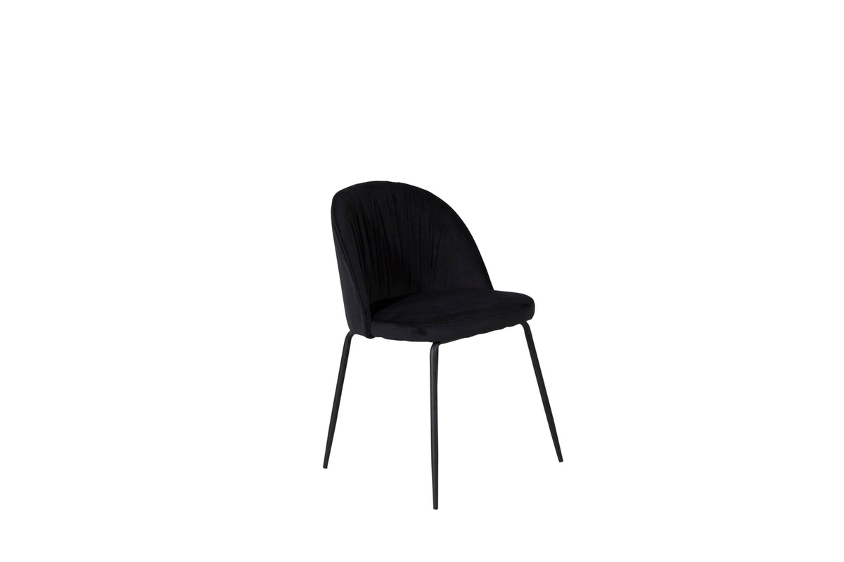 En modern stoldröm med alla rätt - bekväm, stilren och modern! Matstol Wrinkles har en exklusiv helklädd design med ben i svart pulverlackerad metall. Rundad rygg och sits med mjuk stoppning, klädd i rynkat svart sammetstyg som skapar en stilren och inbjudande helhet. Lättare montering krävs.