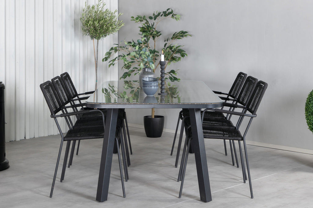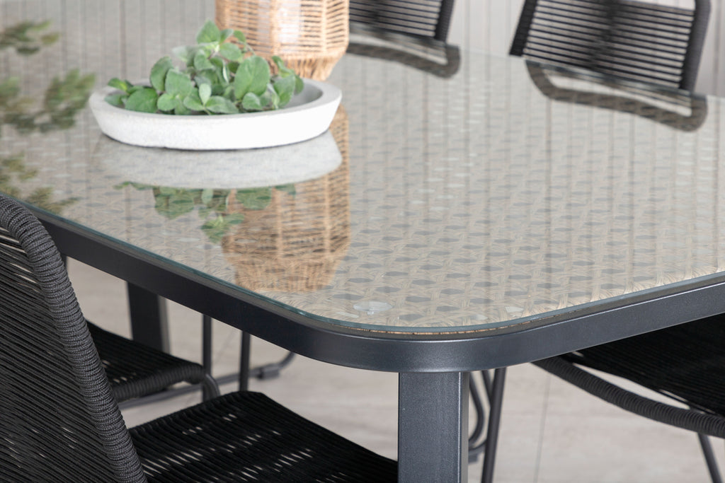 Paola är ett stilrent matbord där bordsskivan i glas ger en personlig och unik touch. Den skandinaviska designen och lätt utsvängda bordsbenen i svart stål skapar en iögonfallande helhet och gör att bordet passar lika bra till vardags som till fest. Bjud in till många sociala stunder i sommar!