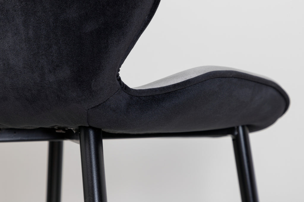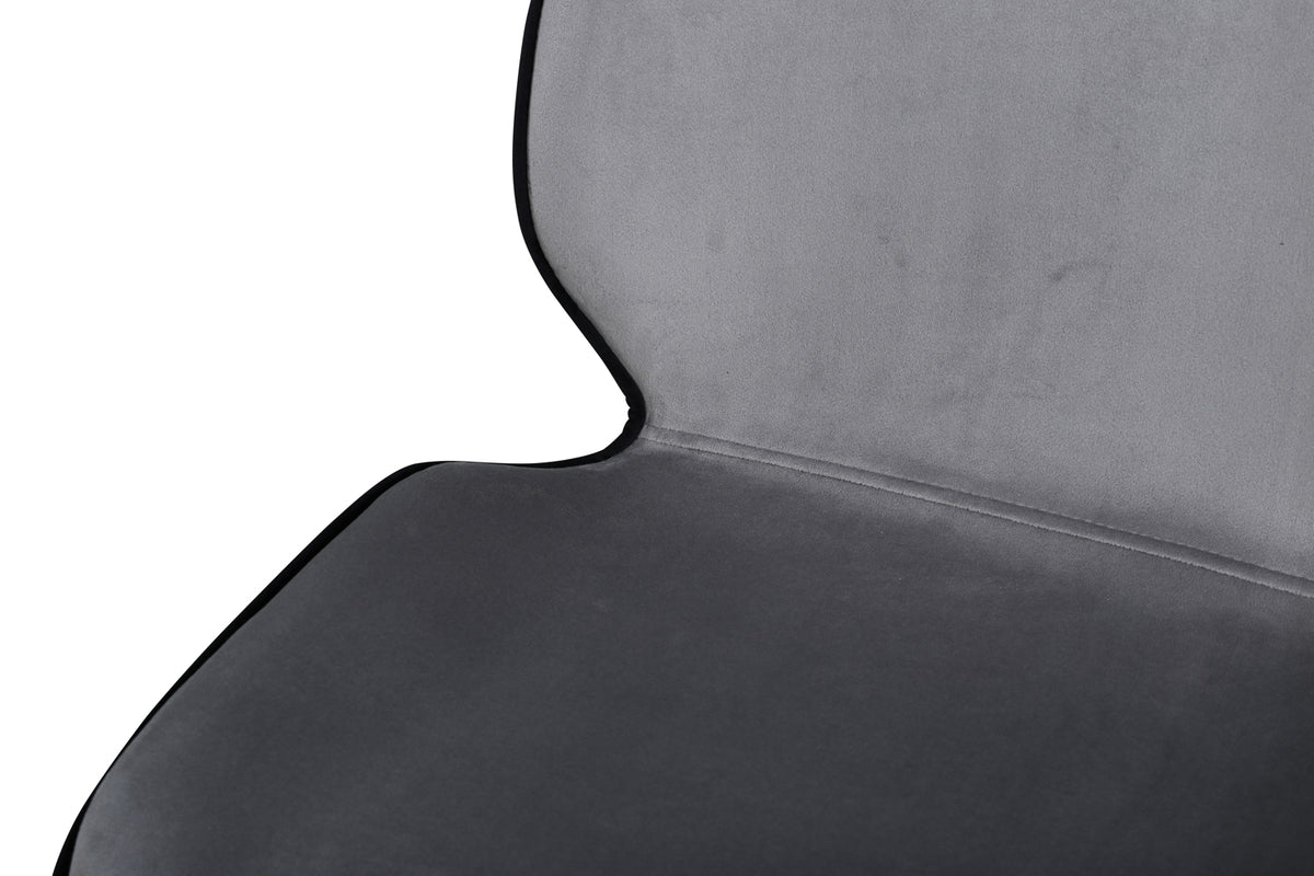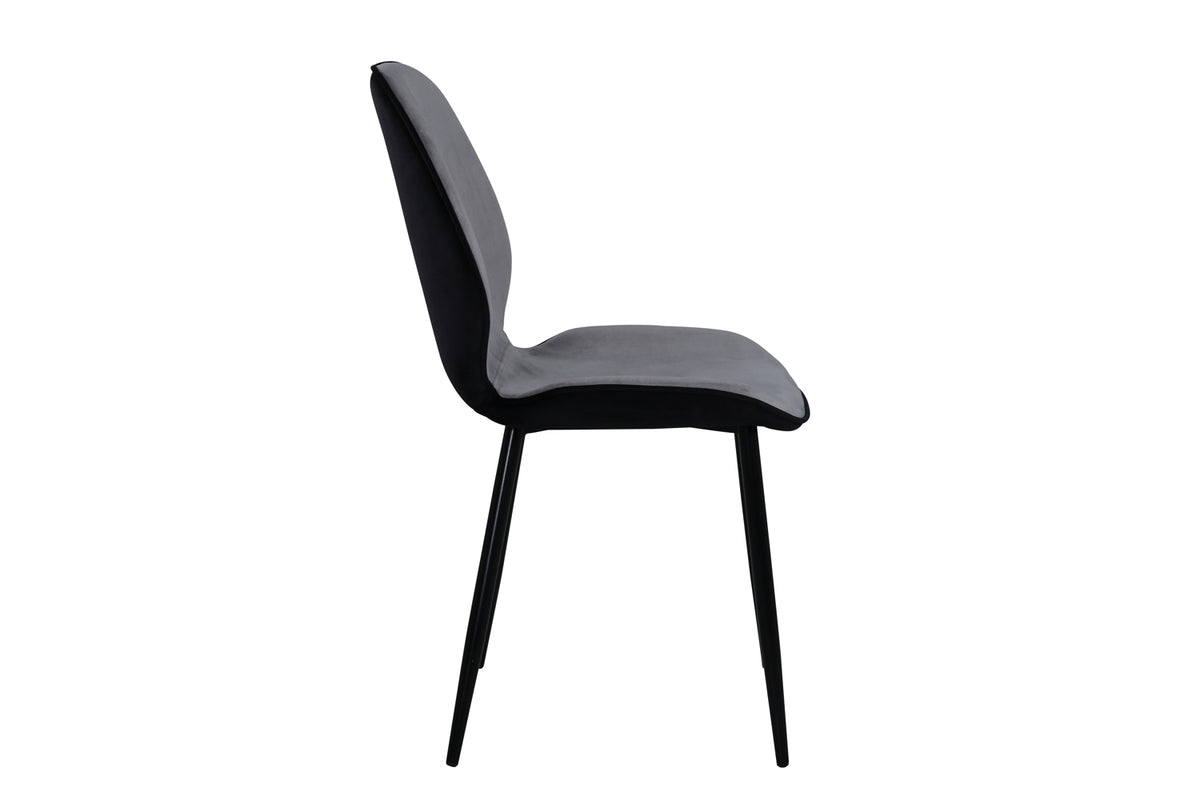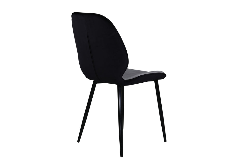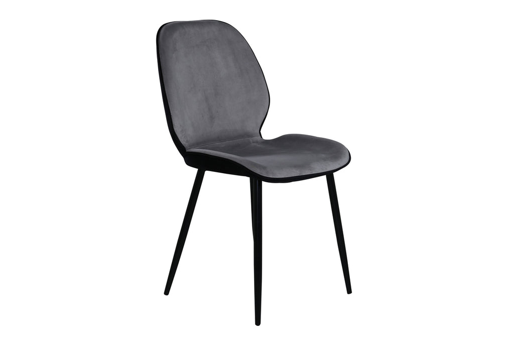 Skapa ett modernt blickfång i vardagsrummet med matstolar från serien Emma i smäcker design! Stolen har en följsamt rund utformning med en sits i grå sammet och polyesterlinne samt lätt utsvängda stolsben i svart järn. Stolens rygg är svart vilket blir en trendig kontrast till stolens framsida. Låt tiden här bli till dagens höjdpunkt och slipp kompromissa mellan komfort och stil!