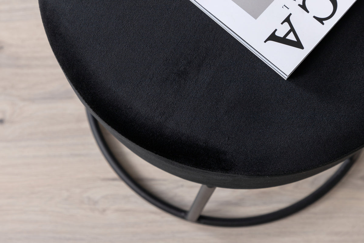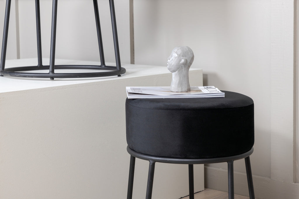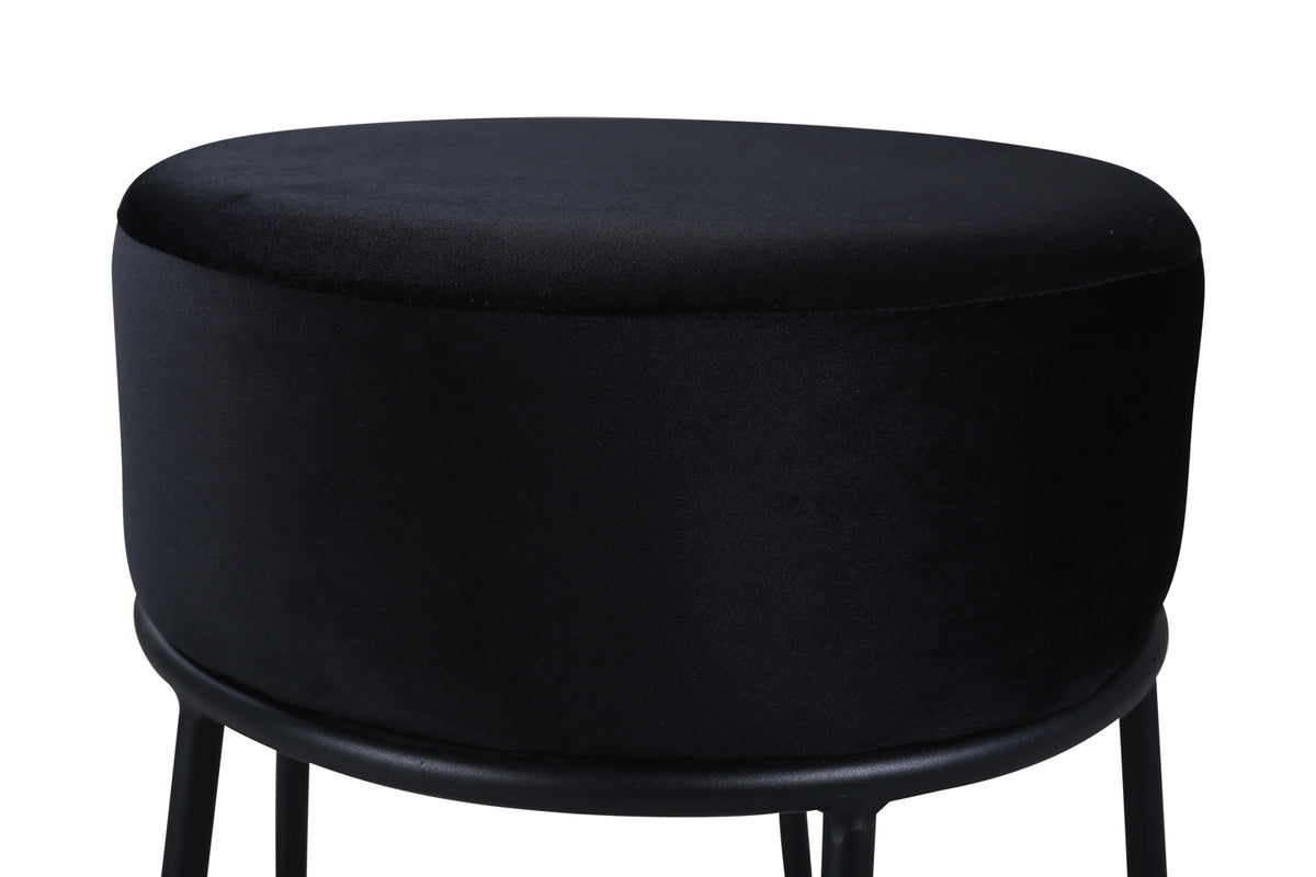 Sittpuffen Petra i genomgående svart kulör och sammetslena tyg skapar ett stilsäkert blickfång i ditt hem! Trots sin nätta storlek gör den ett imponerande intryck och passar lika bra solitär som inredningsdetalj, som tillsammans med din soffgrupp. Tillverkad av materialen skum, bomullsfiber, sammetstyg och böjt trä. Stommen är dekorativt cylinderformad i svart järn och bidrar till en luftig känsla. Sittpuffens mått: Diameter: 45,5cm, Höjd: 46,5cm. Lika lättplacerad och praktisk som iögonfallande!