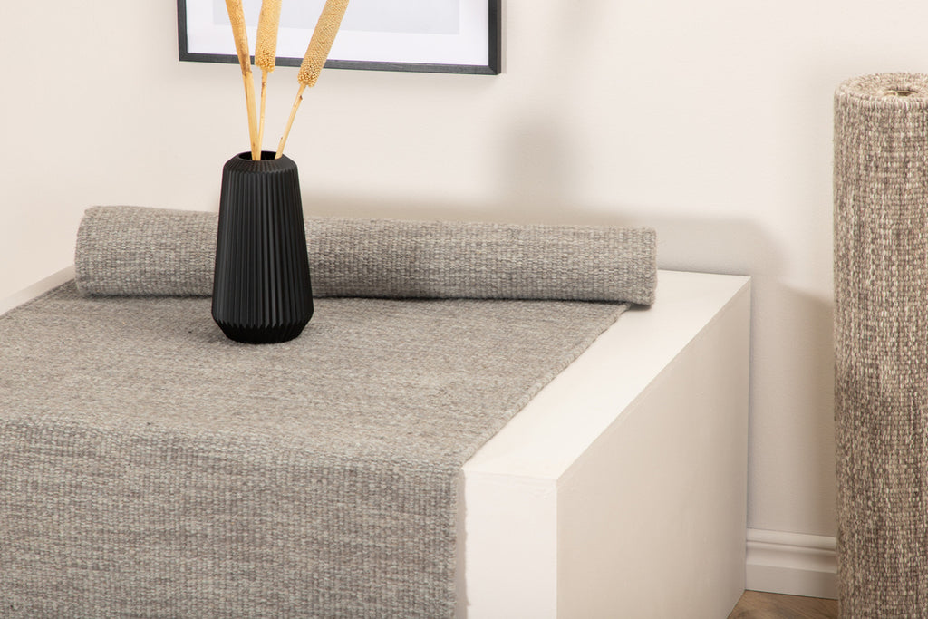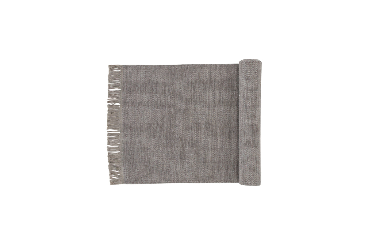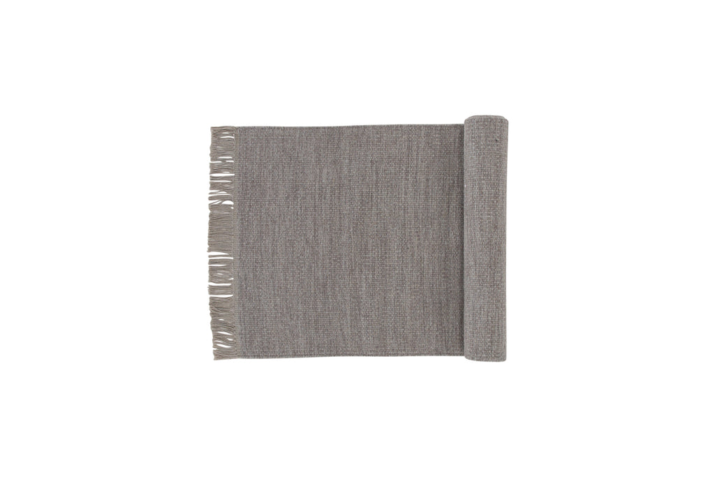 En dekorativ inredningsdetalj i läcker grå nyans och spräckligt mönster - skapa en ombonad känsla i ditt vardagsrum! Mattserien Cyrus erbjuder handvävda ullmattor i slitstark kvalité och ger dig en trogen matta som står sig över tid. Välj bland olika storlekar och kulörer för att hitta vilken matta som passar ditt hem bäst. Här får du en modern matta med klassiska fransar på kortsidorna som lyfter din inredning till nästa nivå. Mattans mått: 250x80 cm.