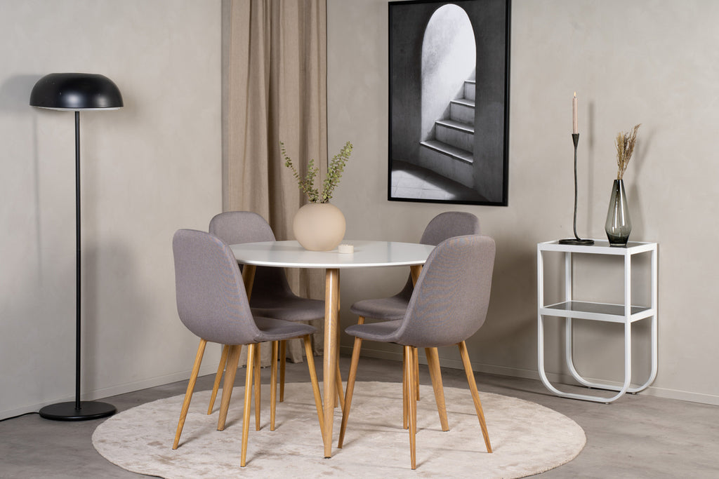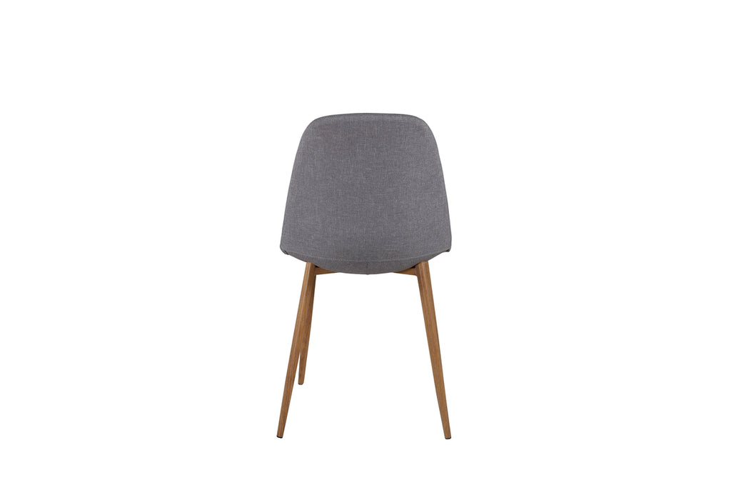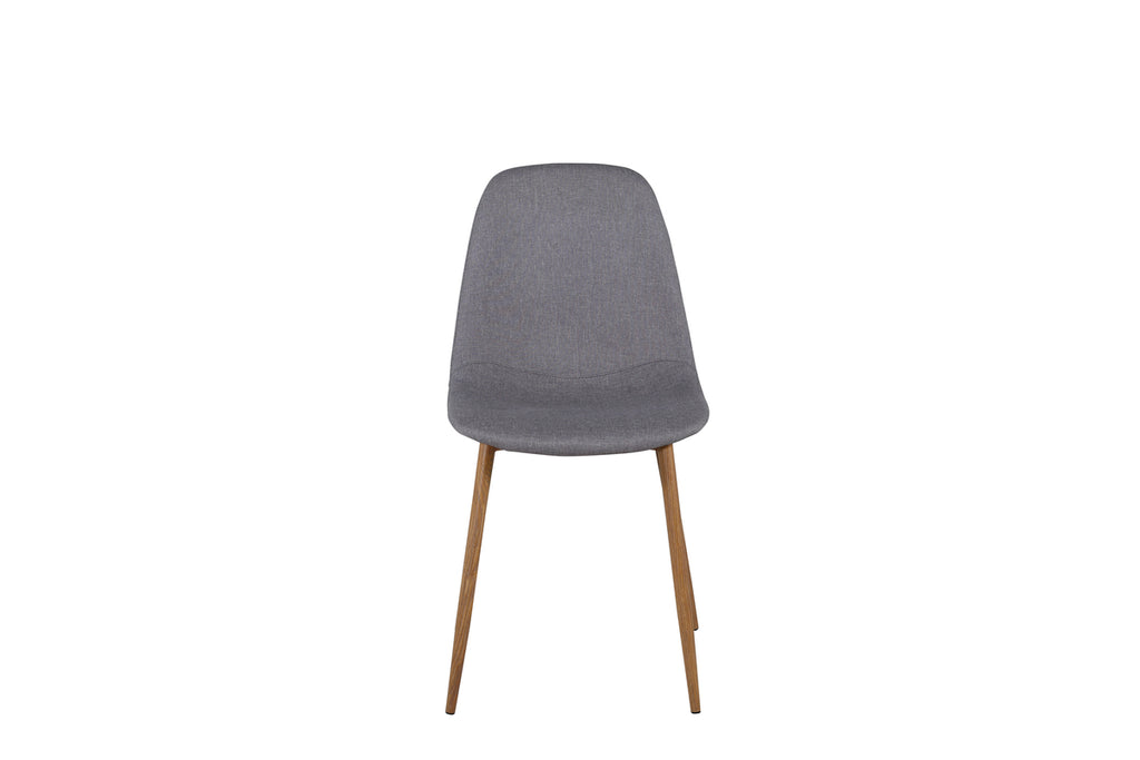 Matstol från serien Polar med fokus på både komfort och design! Benen är i ekfolierad metall som ger en modern trä-look till inredningen och matchas snyggt med stolsryggen/sitsen i grått polyestertyg. Lättare montering krävs.