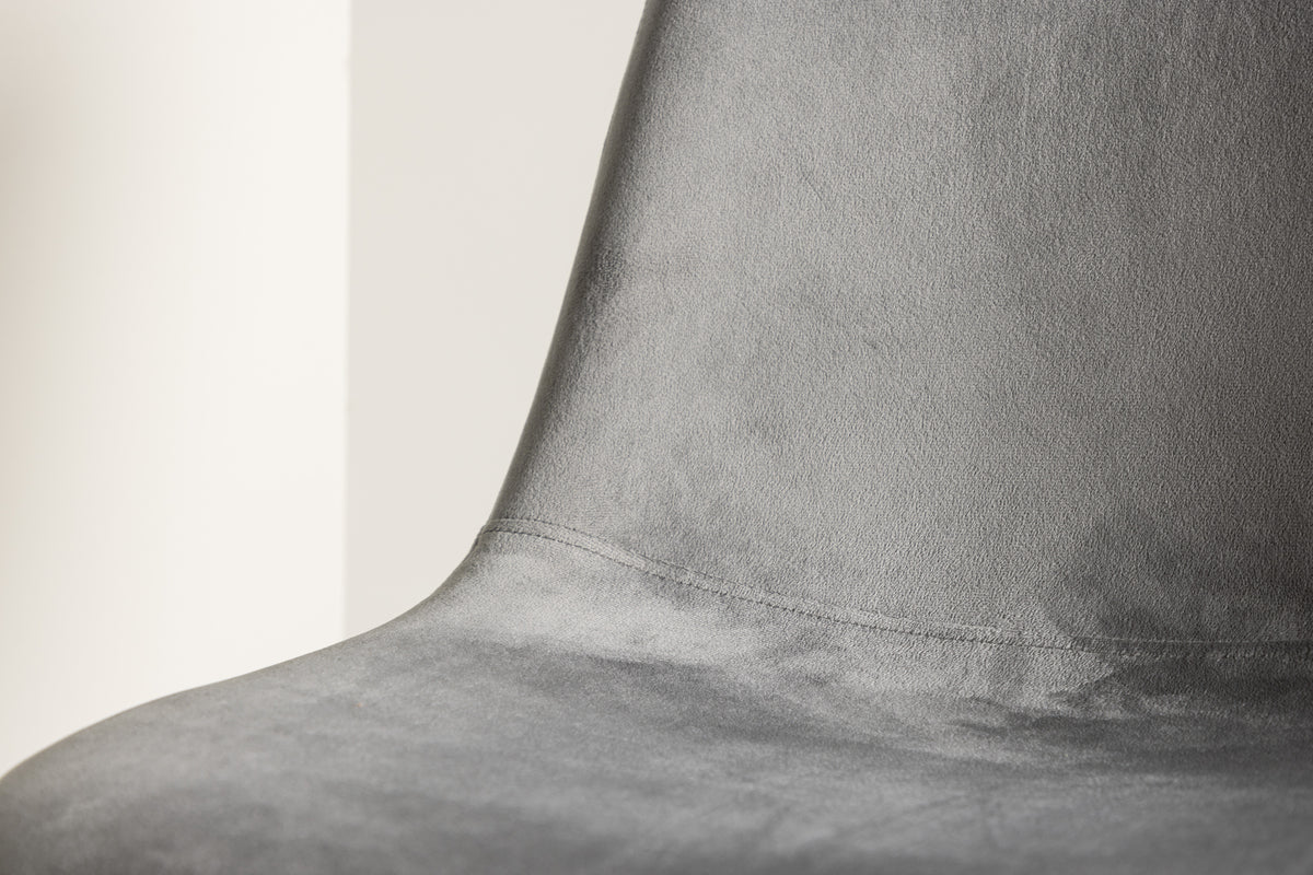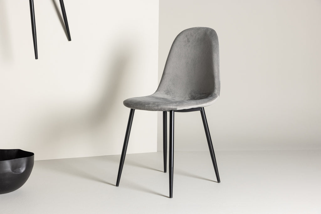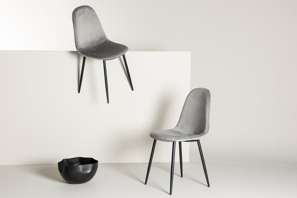 En modern stoldröm från serien Polar i tidlös grå kulör! Den här matstolen i en helklädd design med lätt rundad rygg och sits i sammetstyg och ben i svart pulverlackerad metall är lika bekväm som iögonfallande. Möblera hemmets hjärta inbjudande och trivsamt och njut av härliga måltider tillsammans! Lättare montering krävs.