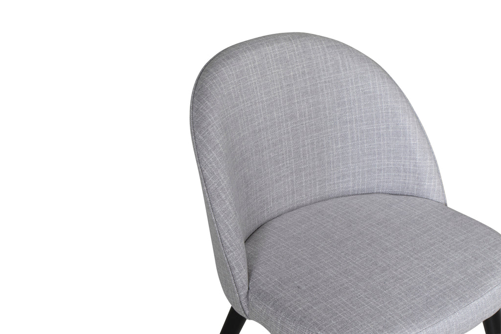 Möblera vardagsrummet eller köket stilrent och tidlöst med matstolar från serien Velvet i behaglig grå kulör! Dessa matstolar har en helklädd design, ben i svart pulverlackerad metall samt rundad rygg och sits i ljusgrått polyestertyg. Rygg och sits i mjuk stoppning ger extra komfort. Lättare montering krävs.