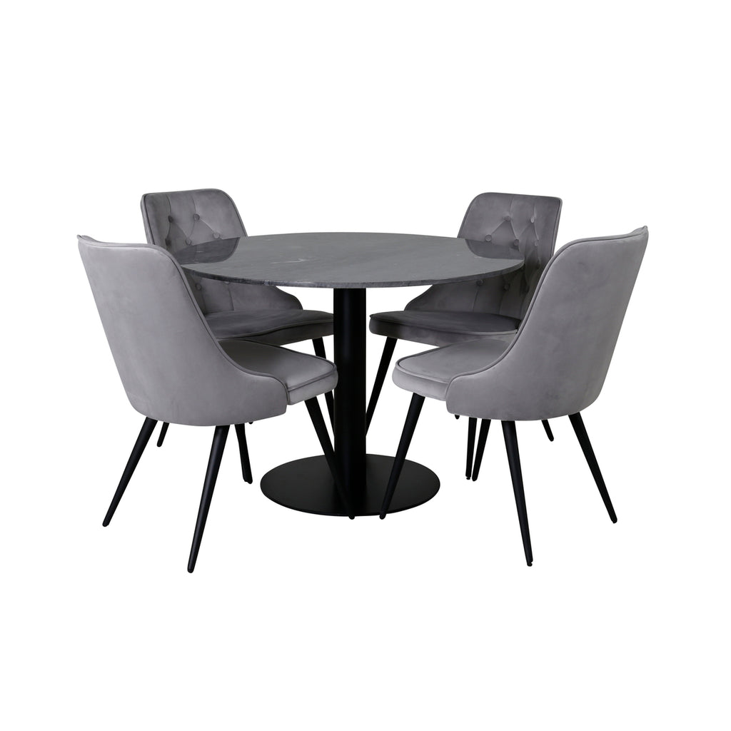 Det perfekta matbordet både till vardags och fest! Lika praktiskt som stilrent i elegant design. Det här runda matbordet har en blank bordsskiva i marmor och ett underrede i metall. Matcha med ett par läckra matstolar för den kompletta matgruppen!