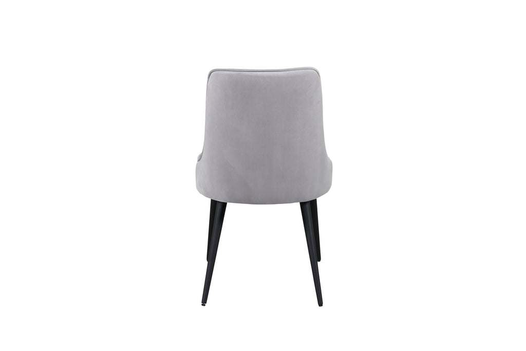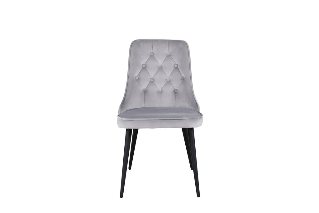 Inred hemmets hjärta med matstolar i serien Velvet Lyx för ett mer elegant blickfång i vardagsrummet! Stolen har en helklädd design i smäckert grått sammetstyg med knappar och dekorsöm i ryggen som blir till en snygg detalj. Ben i svart pulverlackerad metall och mjuk stoppning i rygg och sits för extra komfort. Lättare montering krävs. Sitt lika bekvämt som snyggt!