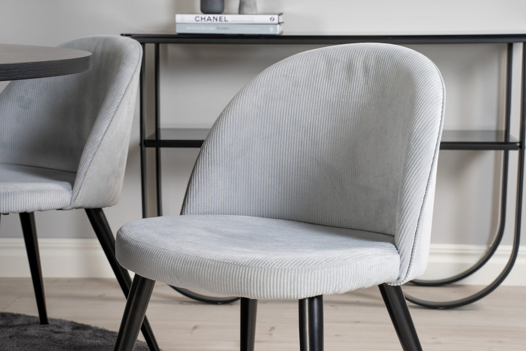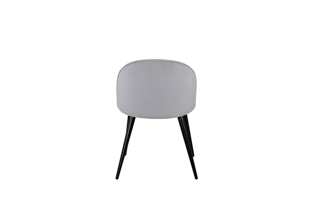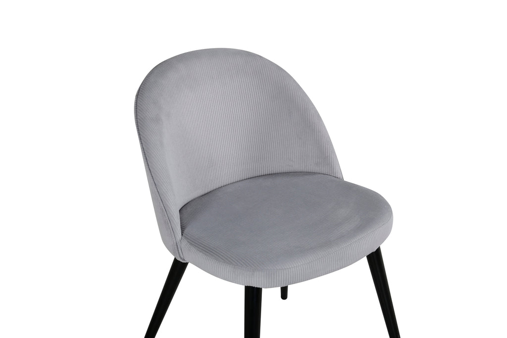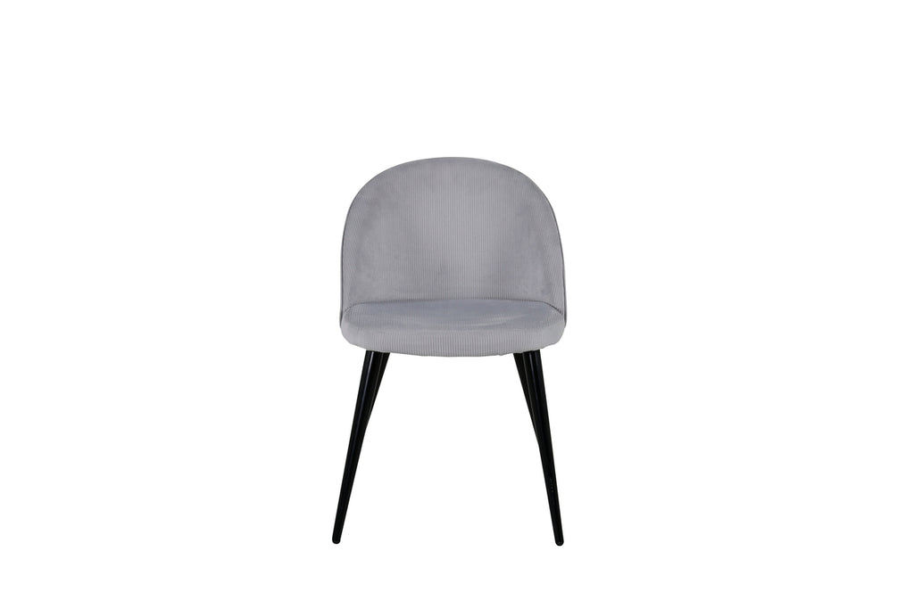 En modern stoldröm från serien Velvet i stilren grå kulör! Den här matstolen har en helklädd design med lätt rundad rygg och sits i mjukt manchestertyg och ben i svart pulverlackerad metall – garanterat lika bekväm som iögonfallande. Lättare montering krävs. Möblera hemmets hjärta inbjudande och trivsamt och njut av härliga måltider tillsammans!