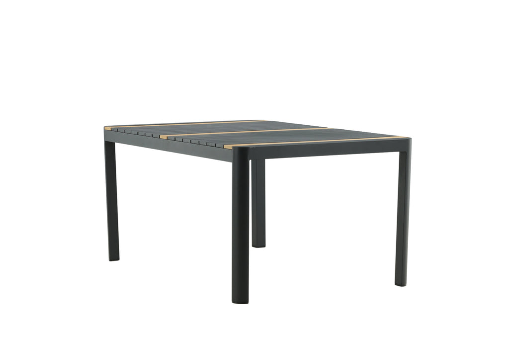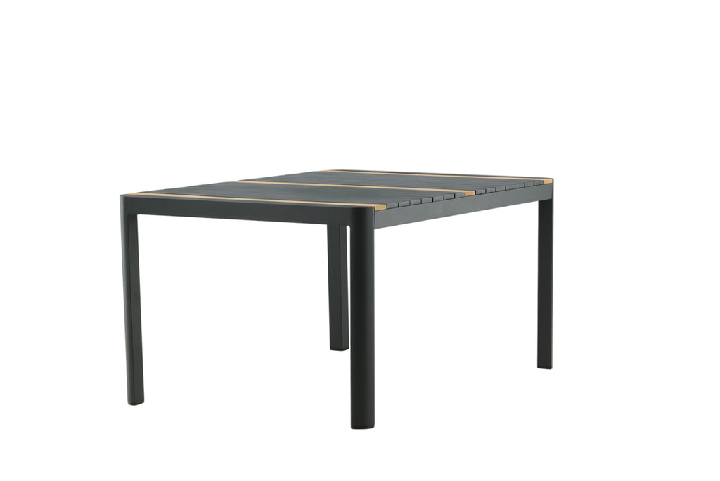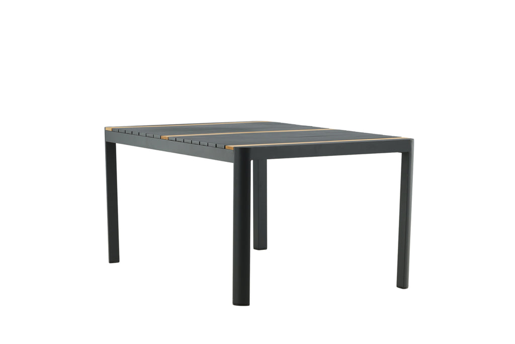 Togo - ett rektangulärt matbord som gör succé likväl till vardags som till fest! Det här läckra matbordet har en modern bordsskiva i teak och ett underrede i svart alluminium: en tidlös färgkombination. Den genomtänka helhetsdesignen är lika stilren som slitstark så här får du ett bord som kommer stå sig över tid!